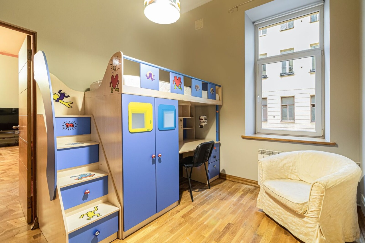 ID: 393874 Квартира с большой общей зоной кухни (на подиуме) и гостиной и двумя небольшими спальнями. Одна из спален может быть использована как детская или переоборудована в кабинет. Очень комфортное расположение - рядом две станции метро, Матвеевский садик, по Большому пр. много ресторанов и магазинов.