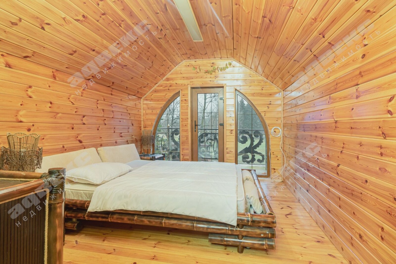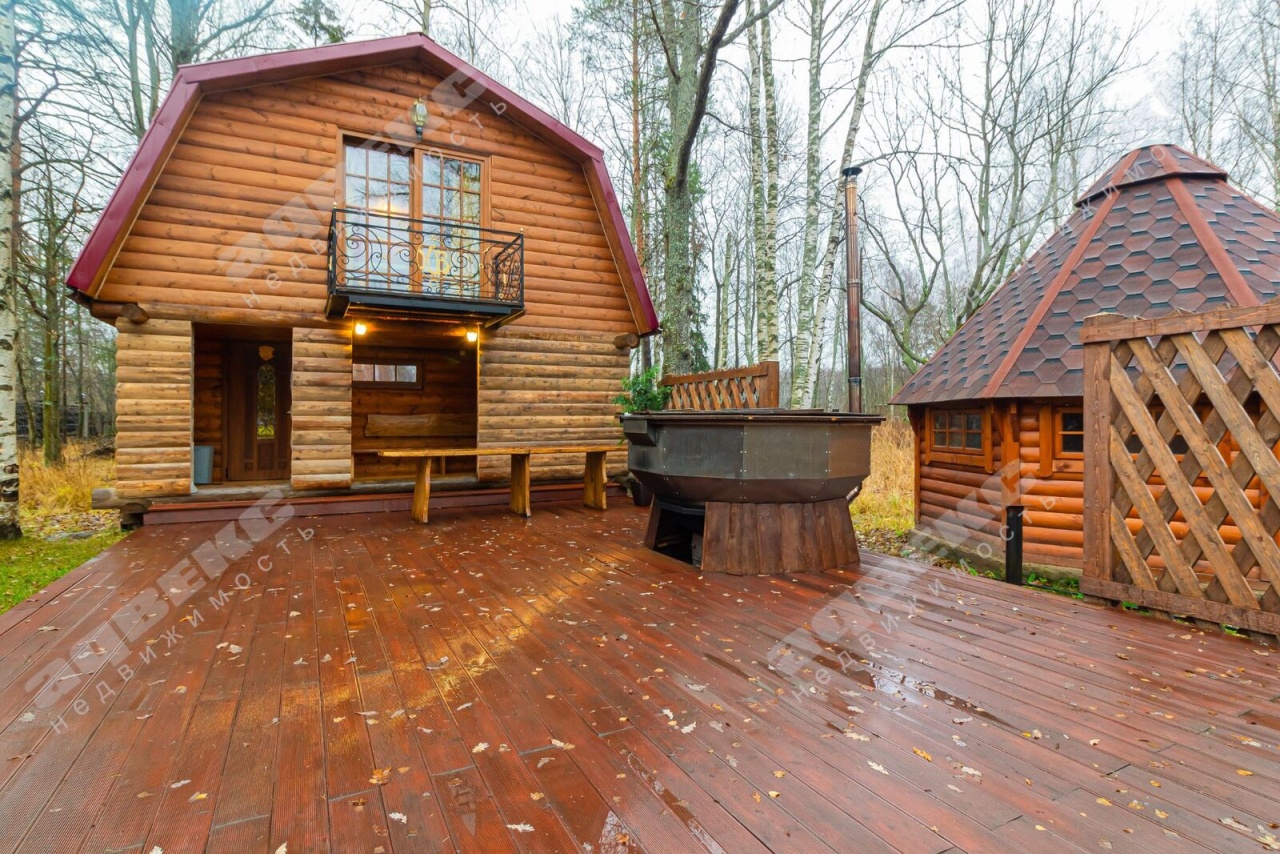 3. Дом для проживания 1, объединен настилом из натуральной лиственницы с мангальной зоной и имеет отдельный въезд; Общая площадь здания - 150 кв. м., два этажа, балкон. На первом этаже - просторная кухня-гостиная, спальня и совмещенный санузел, на 2м этаже просторная спальня.