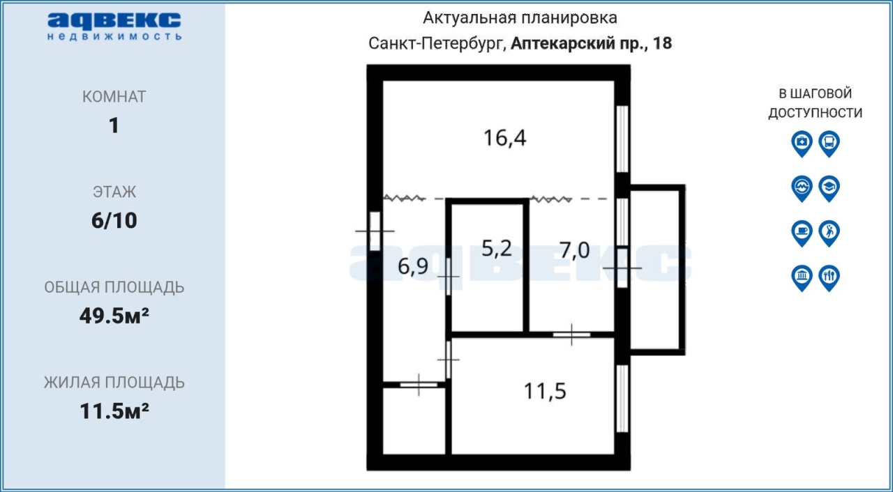 | Жилая площадь | 11.5 кв.м. | Число комнат | 1 |