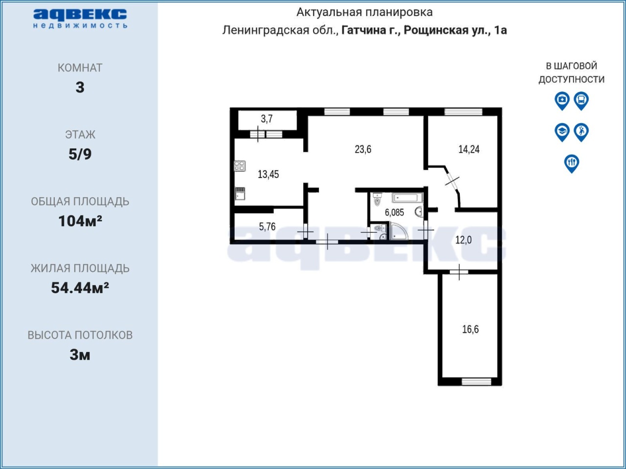 | Этаж | 5 | Общая площадь | 104 кв.м. |