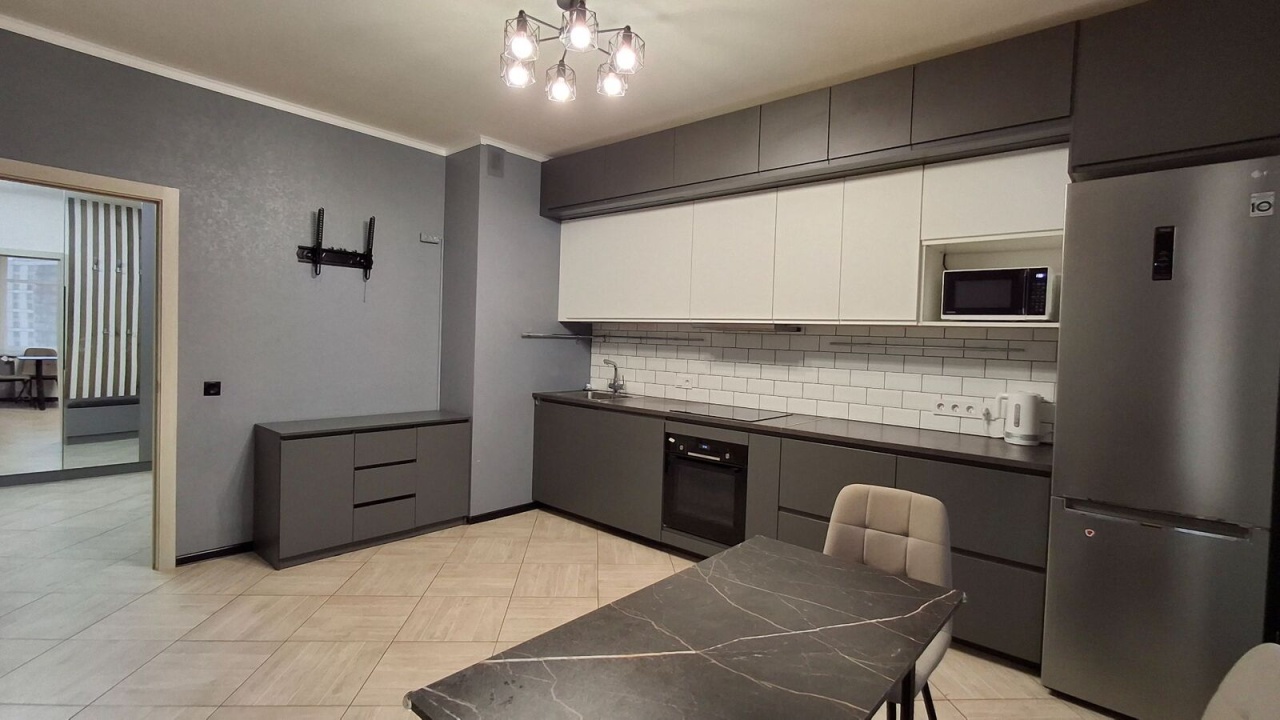 Светлая, теплая, уютная, с просторной кухней-гостинной и лоджией с панорамным видом. Теплый пол. В квартире есть все необходимое: варочная панель, микроволновая печь, духовой шкаф, вытяжка, посудомоечная машина, 2х спальная и детская кровати, шкафы (удобной системой хранения) и комоды. В квартиру проведен интернет, система Умный дом позволяет управлять светом в спальне, радиаторами, датчиком движения, розетками и всем светом.