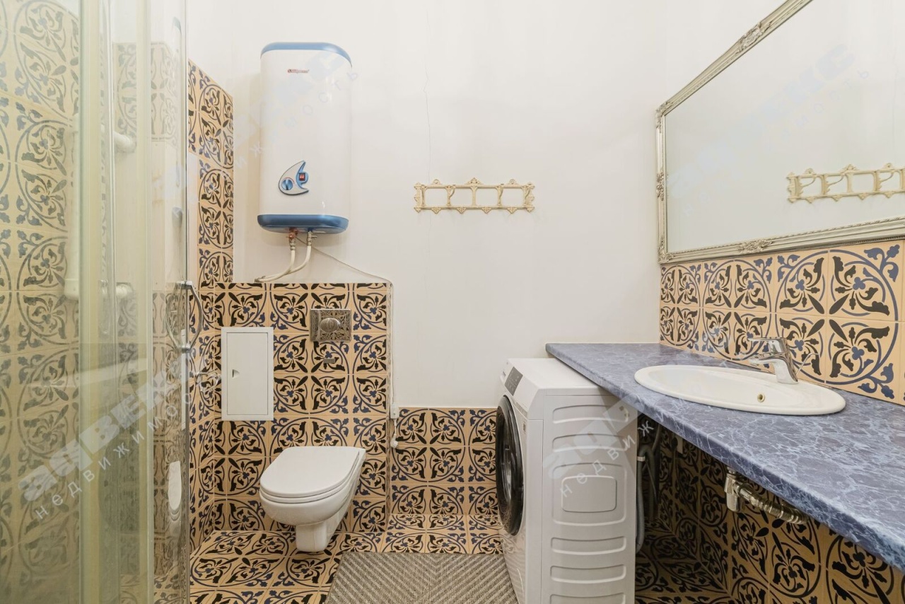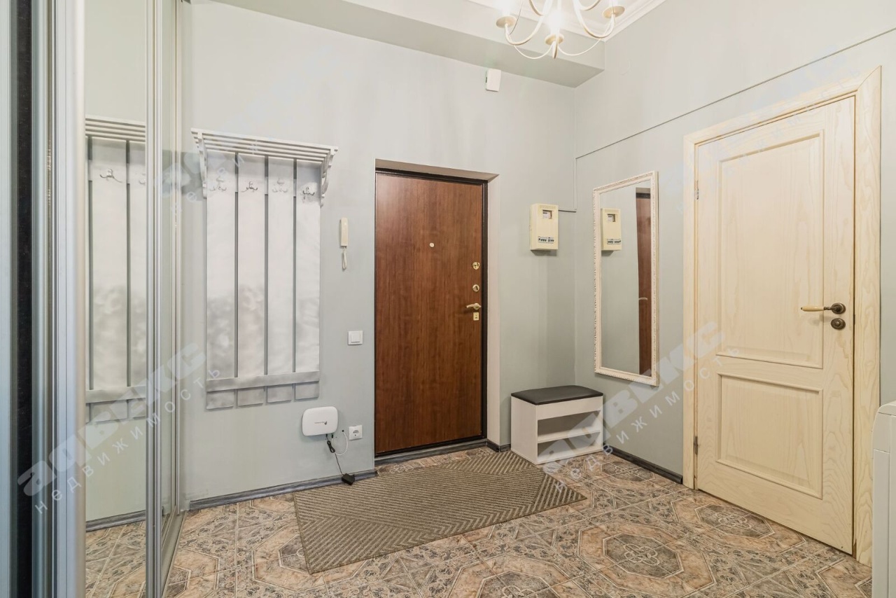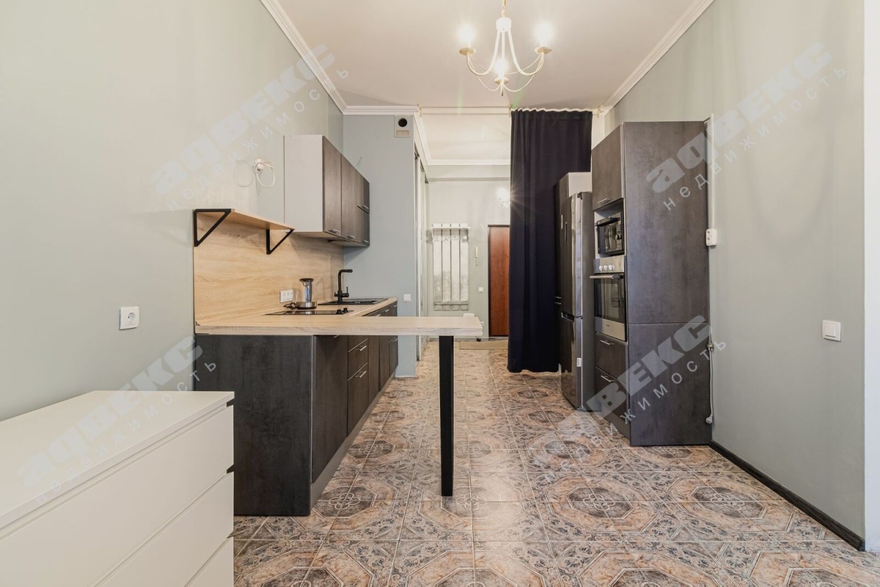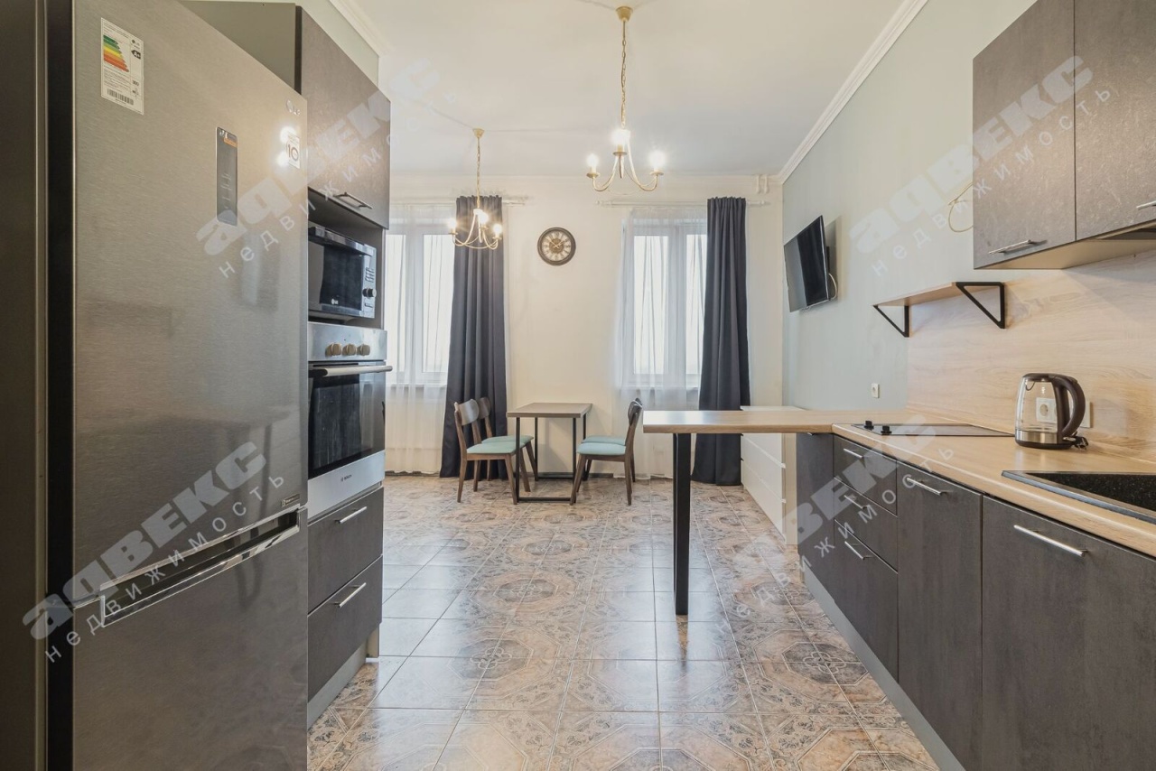 Общая площадь квартиры составляет 43.3 квадратных метра. Жилая комната занимает 17.1 квадратных метра, кухня — 12.7 квадратных метров. Высота потолков в квартире — 3.1 метра, что создаёт ощущение простора. Жильё находится на 14 этаже 17-этажного дома. В квартире выполнен евроремонт. Санузел совмещённый. Окна выходят во двор, что способствует меньшему уровню уличного шума. В квартире установлена электрическая плита. При продаже остаётся мебель как в жилых комнатах, так и на кухне.