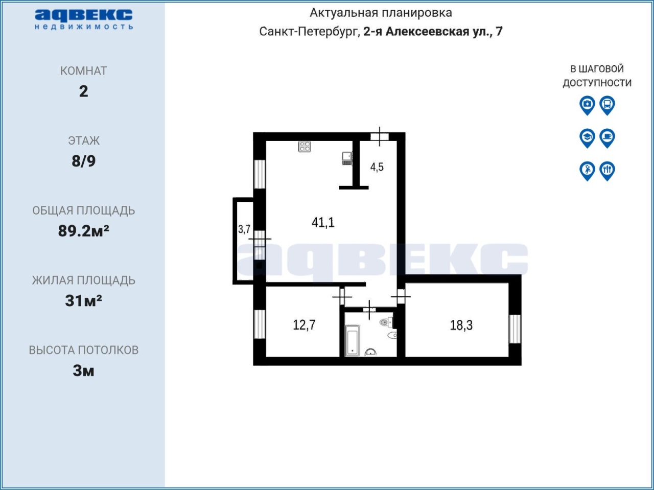 Этаж 8 Общая площадь 89.2 кв.м.