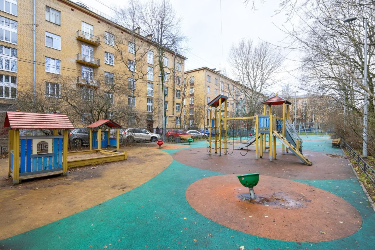 Дом: Кирпичный сталинский дом (1959 г.) с отремонтированной парадной и железобетонными перекрытиями. Чистый, ухоженный двор.