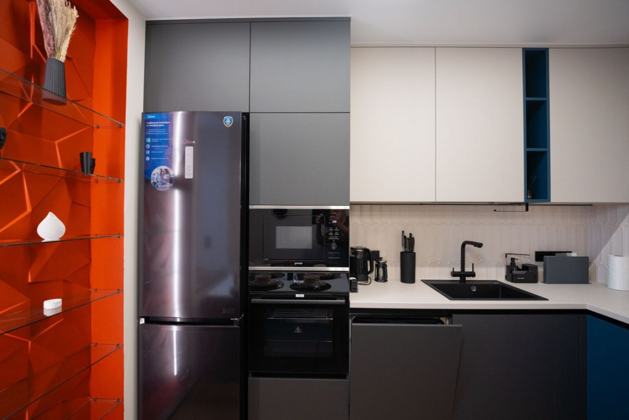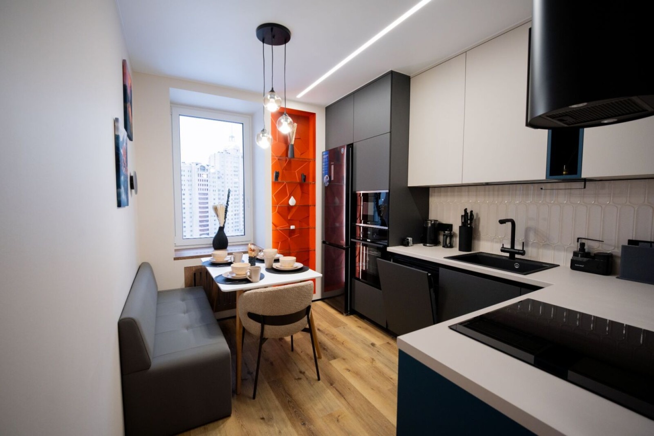 Площадь кухни 9.6 кв.м. Состояние ремонта Дизайнерский