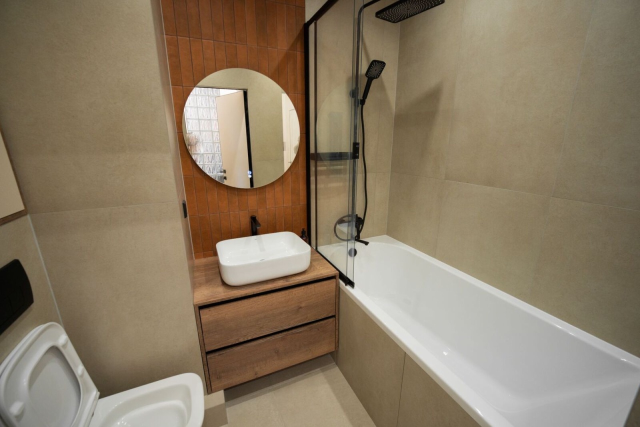 В вашей будущей квартире сделан отличный ремонт по дизайн-проекту. Качество материалов, техники и наполнение квартиры вы можете оценить на предоставленных фотографиях и лично, при просмотре.