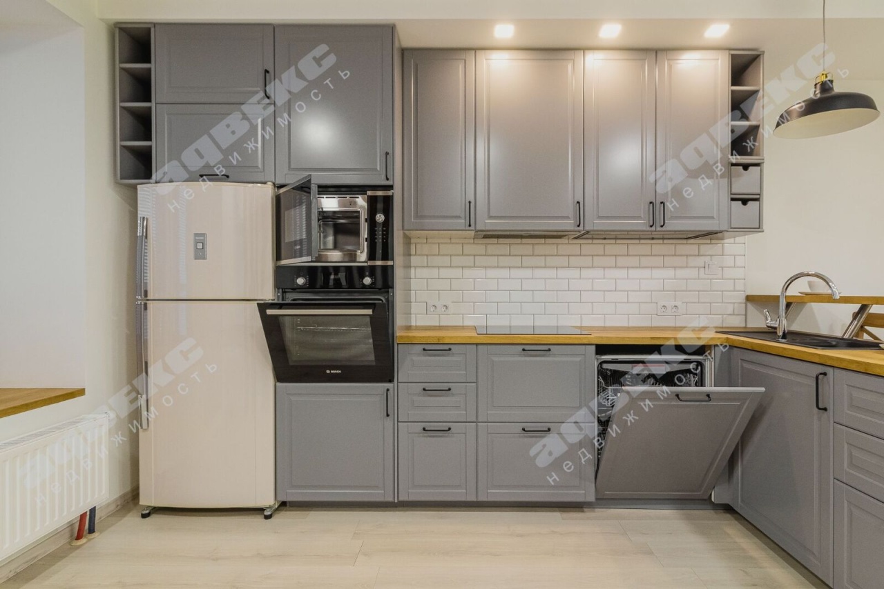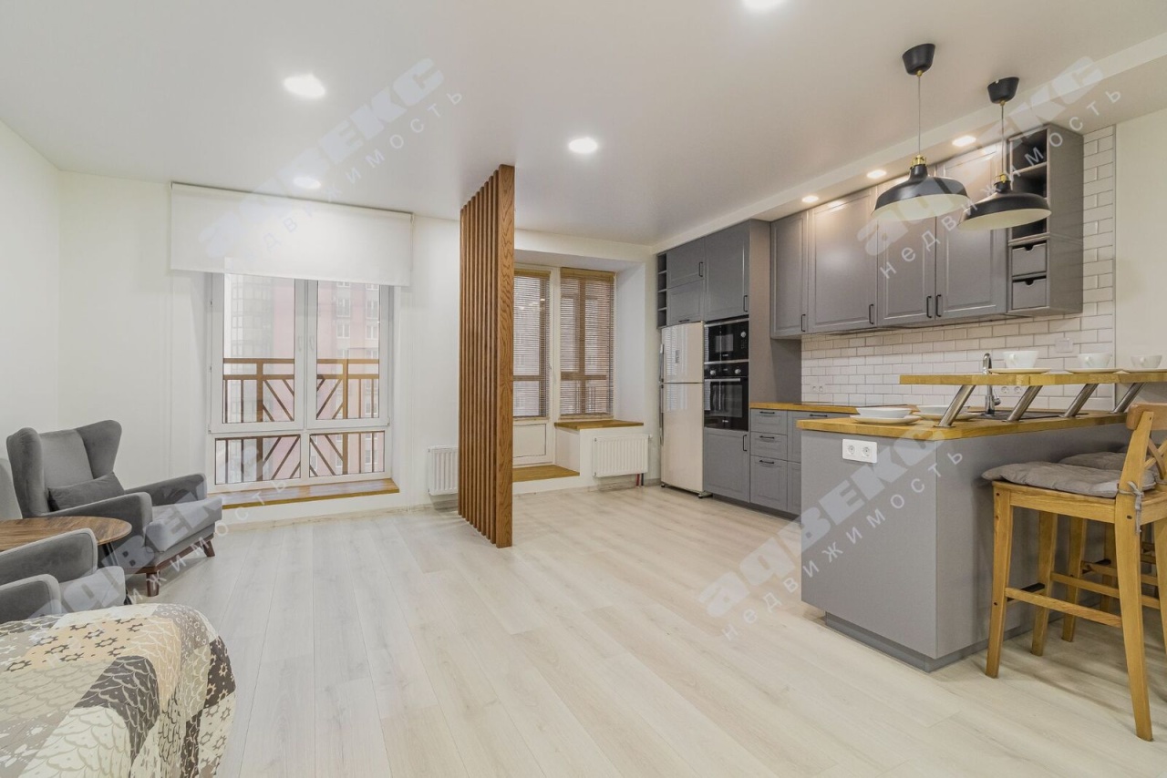 - Квартира полностью готова к проживанию: кухонная зона с продуманным наполнением оборудована современной техникой Bosch - встроенная посудомоечная машина, духовой шкаф, встроенная микроволновка, варочная панель. Удобное спальное место и зона для отдыха с комфортными стильными креслами. Все продумано до мелочей.