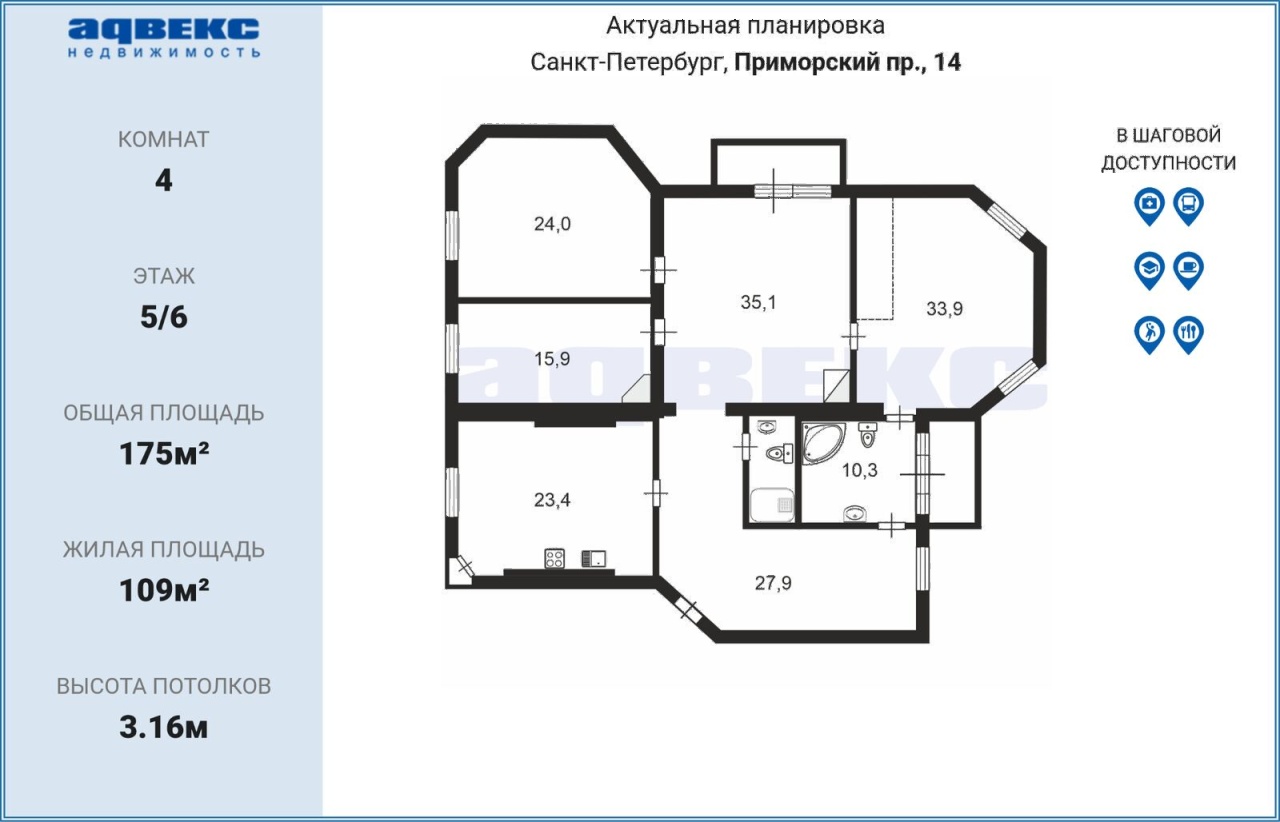 | Этаж | 5 | Общая площадь | 175 кв.м. |