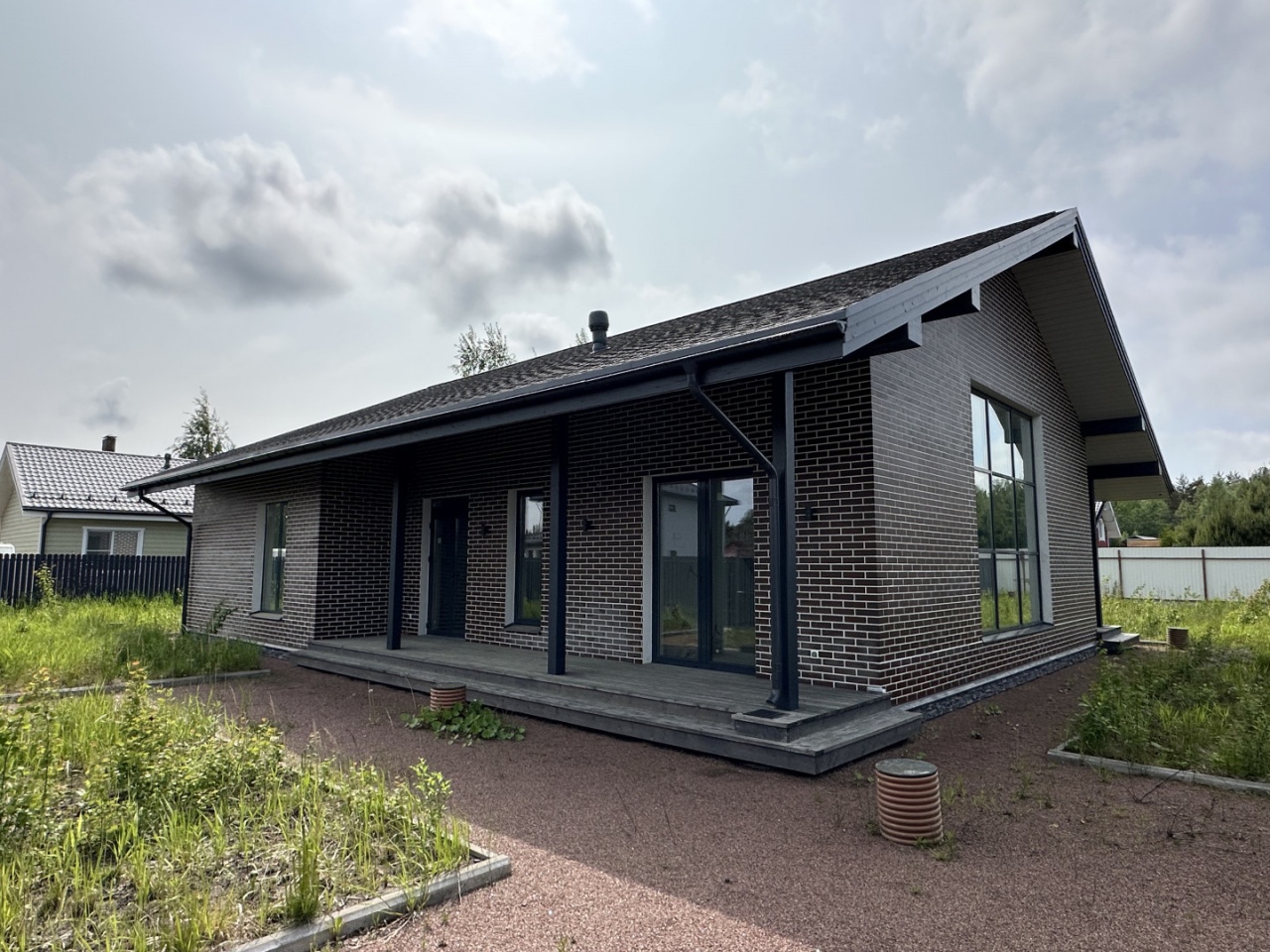 Дом и участок по технической части полностью завершены, осталось только выбрать и смонтировать финишное покрытие стен и пола.