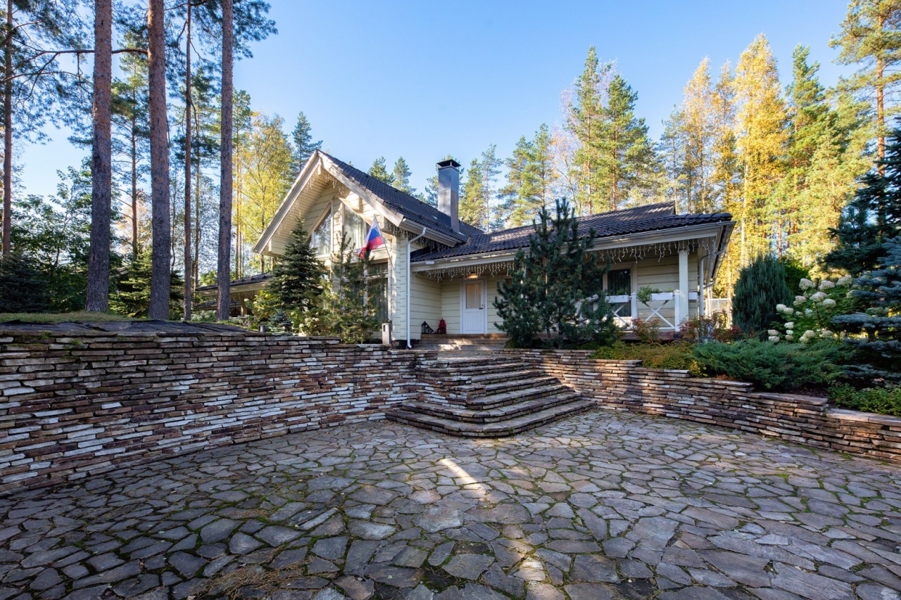 Арт. 124178120 < br> ЭЛИТНЫЙ КОТТЕДЖ HONKA В ПОСЁЛКЕ «МЕДНОЕ ОЗЕРО-2» < br> Общая информация < br> Продаётся современный коттедж «HONKA» из финского клееного бруса, расположенный в одном из самых престижных и благоустроенных посёлков Ленинградской области — Медное Озеро-2. Коттедж использовался минимально (не более двух месяцев в год) и находится в отличном состоянии. Все инженерные системы обслужены, внутренние помещения в идеальном виде. < br> УЧАСТОК < br> Площадь участка — 20 соток, категория земель — земли населённых пунктов, ИЖС. < br> Форма собственности — частная, один собственник. < br> Участок ровный, частично лесной, выполнен ландшафтный дизайн с газоном, садовыми деревьями и кустарниками, установлена автоматическая система полива. < br> Благоустройство включает дорожки, освещение, забор и автоматические ворота. < br> На территории расположены: < br> • крытый навес на два автомобиля, < br> • котельная, < br> • хозблок, < br> • баня, < br> • теплица, < br> • гостевой дом (построен в 2025 году). < br> Подъезд — асфальтированный. < br> ПЛАНИРОВКА < br> Первый этаж: просторная кухня-столовая, гостиная с камином из натурального оникса, спальня, санузел, гардеробная, мастер-спальня с собственной ванной комнатой. < br> Второй этаж: две спальни и санузел. < br> Коммуникации < br> • Электроснабжение — 30 кВт < br> • Водоснабжение — центральное < br> • Канализация — центральная < br> • Отопление — газовое < br> • Интернет — оптоволокно, спутниковая антенна < br> • Безопасность — видеонаблюдение и сигнализация < br> ВНУТРЕННЯЯ ОТДЕЛКА И ОСНАЩЕНИЕ < br> Коттедж выполнен в фирменном стиле Honka, с использованием премиальных материалов и оборудования. < br> • Пол — дубовый паркет < br> • Стены — итальянская штукатурка < br> • Просторные помещения с панорамными окнами и высокими потолками < br> Кухня оборудована техникой Gaggenau (варочная панель 90 см, духовой шкаф EB 333 (90), микроволновая печь, шкаф для подогрева посуды, 2 посудомоечные машины), < br> а также холодильниками и морозильной камерой Liebherr. Столешница выполнена из натурального камня, подчёркивающего статус и эстетику интерьера. < br> Дополнительно: стиральная и сушильная машины Asko, гладильная система Miele. < br> Мебель — Gulia Novars, Team 7, Harden, освещение — оригинальные итальянские дизайнерские светильники. < br> Особое внимание заслуживает камин из натурального оникса, создающий эффектный акцент в гостиной и наполняющий пространство теплом и светом. < br> ОСОБЕННОСТИ И ПРЕИМУЩЕСТВА < br> • Финский коттедж HONKA — экологичные материалы и безупречное качество строительства < br> • Панорамные окна, камин, три террасы < br> • Закрытый, охраняемый посёлок с единым архитектурным стилем < br> • На территории: детские и спортивные площадки, теннисный корт, оборудованный пляж у озера, гостевая парковка < br> • Удобное транспортное сообщение, близость скоростных трасс < br> • Респектабельное окружение, высокий уровень безопасности и комфорта.