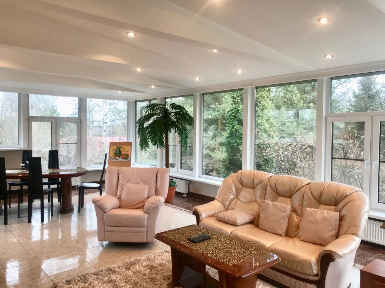 Арт. 117227949 < br> Сдается просторный кирпичный дом с сауной и бильярдной в Ольгино (Приморский р-н, СПб) < br> < br> Сдаётся в аренду уютный, тёплый и комфортный дом в поселке Ольгино, Приморского района Санкт-Петербурга (ул. Лесная). < br> < br> До метро «Беговая» — всего 10 минут на транспорте. Рядом торговые центры, кинотеатры, парк 300-летия, детские развлечения, магазины, кафе и рестораны. < br> < br> Дом кирпичный (3 слоя кирпича), финские деревянные окна, газовая котельная, сплит-системы. < br> < br> Планировка: < br> 1 этаж (банный): сауна (с возможностью турецкой бани), душевая, тренажёрный зал, камин, выход в сад. < br> 2 этаж: кухня, просторная гостиная с камином и барной стойкой, панорамная веранда. < br> 3 этаж (приватный): 2 спальни, кабинет (можно использовать как спальню), ванная. Экологичный пробковый пол. < br> Мансарда: бильярдная, комната для пинг-понга. Паркет. < br> < br> В доме — 3 санузла (по одному на каждом этаже), 2 стиральные машины, посудомоечная машина, 2 холодильника, 2 морозильные камеры, электроплита, духовка, микроволновка, вытяжка. < br> < br> Участок 17 соток с ландшафтным дизайном, фруктово-ягодным садом, теплицей, зоной барбекю, беседками и садовой мебелью. < br> < br> Тёплый гараж на 2 машины. < br> < br> Сдаётся порядочной семье на длительный срок.