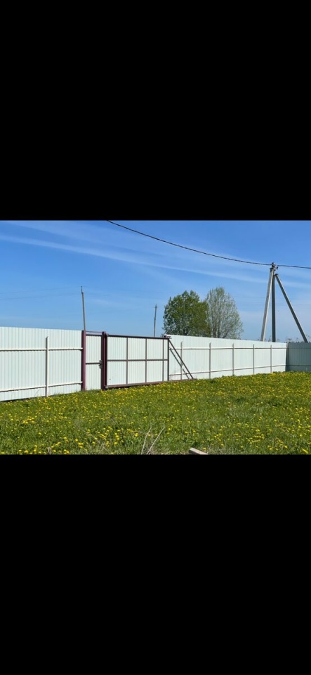 Участок 30 соток, огорожен металическим забором, откатные ворота с двух сторон участка.
