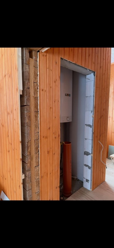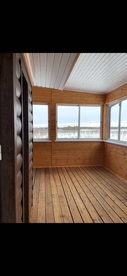 Обшит (блокхаус), утеплён. Стеклопакеты везде, и двери и панорамные окна.