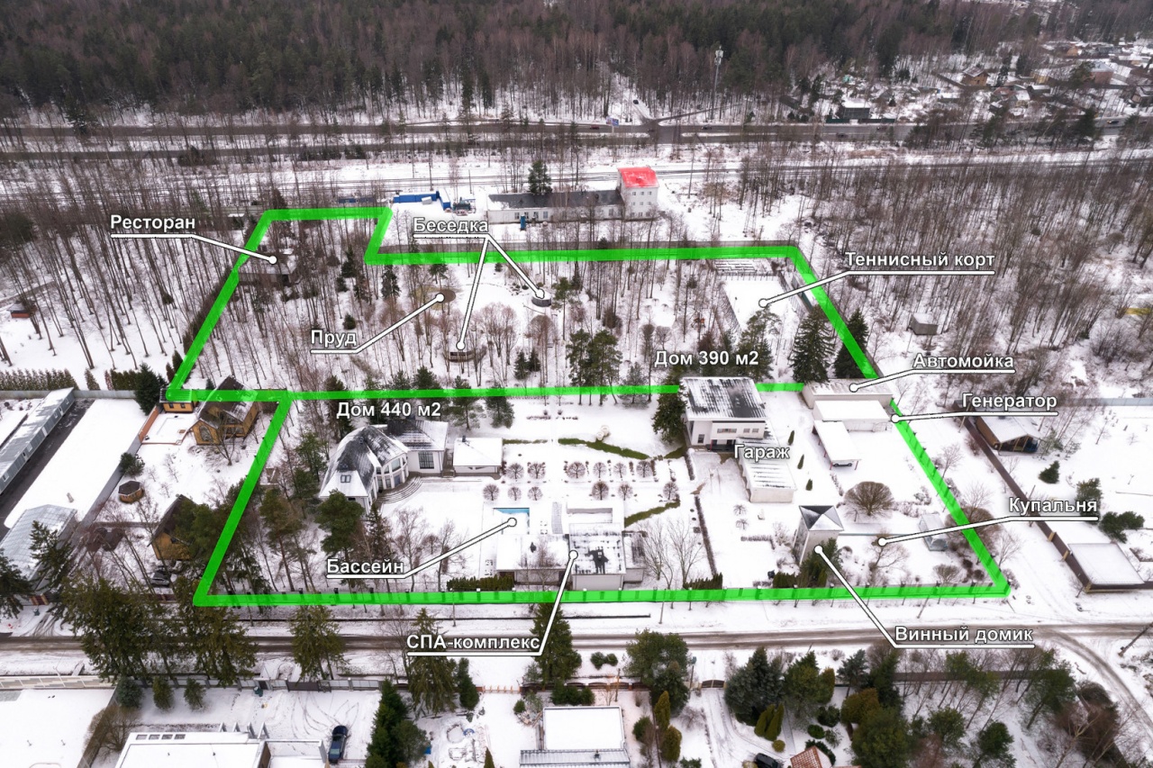 Арт. 64788352 < br> В зоне частной элитной застройки, в курортной зоне Приморского района Санкт-Петербурга, в поселке Лисий нос, предлагается к продаже семейная резиденция. < br> < br> Возведение объекта осуществлялось по индивидуальному проекту, основной задачей которого было реализовать концепцию дома в единении с природой, сама резиденция гармонично вписана в ландшафт участка. < br> < br> В строительстве дома были использованы дорогие архитектурные и интерьерные решения. < br> < br> Общая территория комплекса составляет 188 соток, представляет собой парк с хвойными и лиственными деревьями. Внутренние проезды и дорожки вымощены, есть небольшой сад. < br> < br> Комплекс включает: < br> - Основной дом < br> - Гостевой дом < br> - Ресторан < br> - Теннисный корт < br> - Бассейн < br> - Спа-комплекс < br> - Двухэтажный винный домик < br> - Гараж на 4 машины < br> - Пруд с осетрами < br> - 2 беседки < br> - Автомойка и парковка на 10 машин < br> - Детская площадка < br> < br> Основной дом имеет 2 этажа и цоколь, площадь дома 440 кв. м. Первый этаж представлен уютной гостиной. Рядом с гостиной расположена зона столовой и кухни в современном стиле. Также на первом этаже кабинет со вторым светом и камином. На втором этаже запроектированы мастер-спальня с ванной комнатой и гардеробной, большая детская комната со стеной для творчества детей. На цокольном этаже в темных тонах оборудован кинозал, а также имеется комната для хранения и спа-зона с купелью. Год постройки дома - 2006, выполнен из кирпича. < br> < br> Гостевой дом выполнен из кирпича в стиле модерн, имеет 2 этажа, площадь 389.9 кв. м. Дизайн выполнен с яркими акцентами. На первом этаже нас встречает гостиная с камином, кухня, санузел с душевой. На втором этаже расположились 4 спальни и санузел с ванной. < br> < br> На участке есть большой ресторан на 30 посадочных мест с оборудованной кухонной зоной, мангалом на улице, а также со своей котельной. Идеально для семейных праздников. Поблизости ресторана есть пруд с осетрами и беседка для отдыха. < br> < br> Рядом с основным домом расположился спа-комплекс с комнатой отдыха с панорамным остеклением, акцентом которой является камин, вокруг которого можно присесть и наслаждаться отдыхом. Далее идет зона для спорта с тренажерами, сауна и хамам, криосауна. < br> < br> Резиденция обеспечена всеми инженерными коммуникациями: центральное газоснабжение, водоснабжение, канализация, электроснабжение. Теплоснабжение - автономная газовая котельная, интернет, видеонаблюдение. < br> Предложение эксклюзивно и интересно близостью к городу, уникальной локацией, идеально подходит для постоянного проживания Вашей семьи.