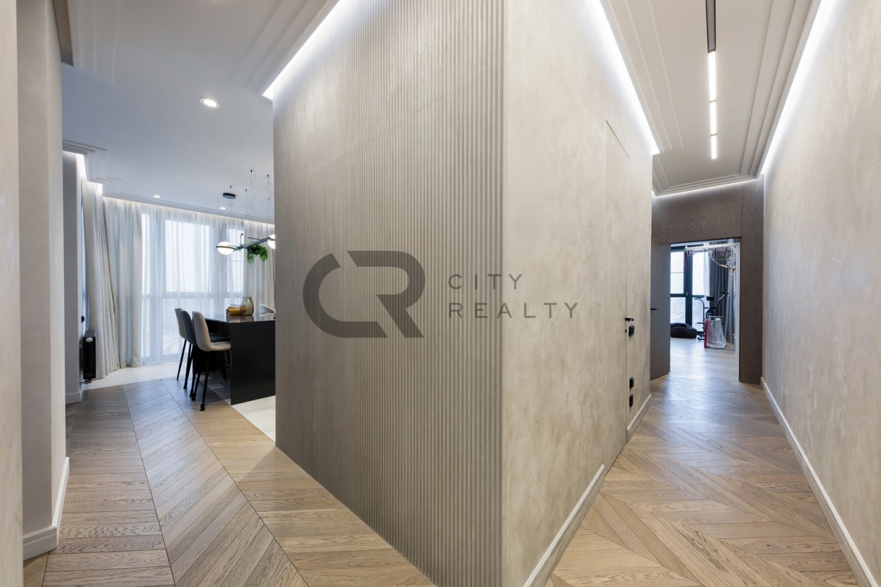 Квартира выполнена по индивидуальному дизайн-проекту с грамотным зонированием: