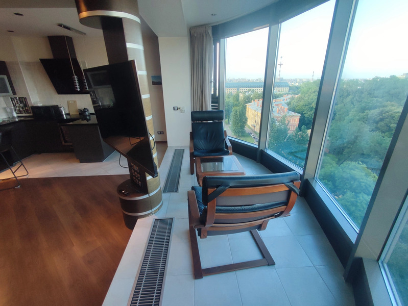 Вход в ЖК возможен с Большого Сампсониевского и Финляндского проспектов. В жилом комплексе своя автономная система отопления и подачи горячей воды. В доме действуют дополнительные службы сервиса (прачечная, химчистка). Отделка парадных выполнена в стиле Art Nouveau, использованы натуральные природные материалы. Интерьеры парадных (в соседней есть потрясающая смотровая площадка) украшены копиями изображенний Сары Бернар известного илюстратора Альфонса Мухи. Территория охраняется, и оборудована системой видеонаблюдения. В каждой парадной предусмотрен ресепшн с консьержем. Есть подземный паркинг, в котором можно арендовать место. Панорамные окна позволяют наслаждаться неповторимой красотой Северной Столицы ежечасно: виды на Неву и исторические архитектурные доминанты города предстают во всей красе как на лодоне. В квартире выполнен качественный ремонт с использованием отделочных материалов итальянских производителей. В вашем рacпоряжeнии гостиная объeдинeнная c куxней, отдeльная cпальня-альков, совмeщенный санузел c ванной.