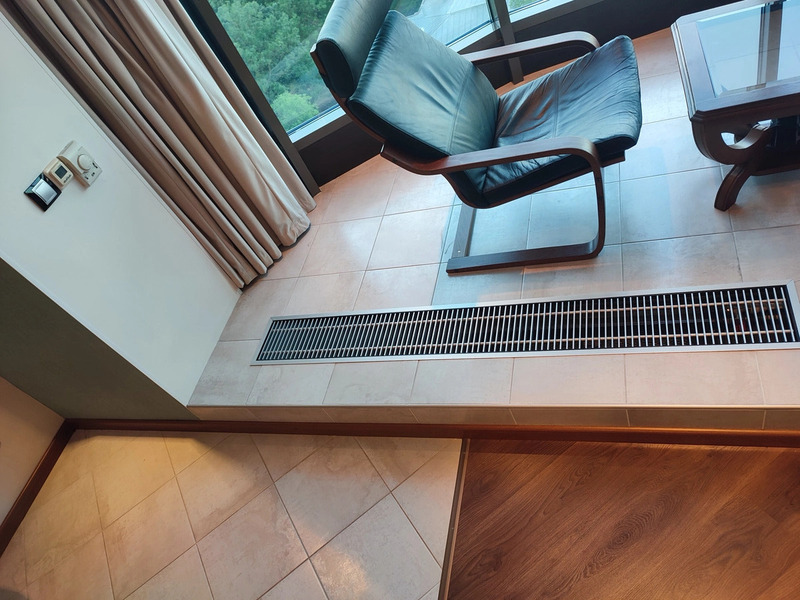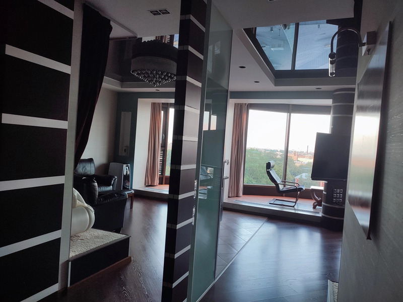 Установлена система кондиционирования (аппарат) и подогрева полов (в ванной и в зоне панорамных окон).