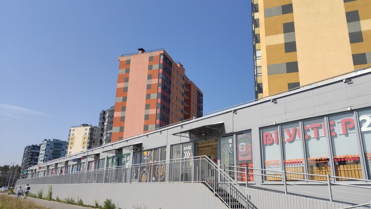 Рядом большой продуктовый магазин, и много магазинов сопутствующих товаров.