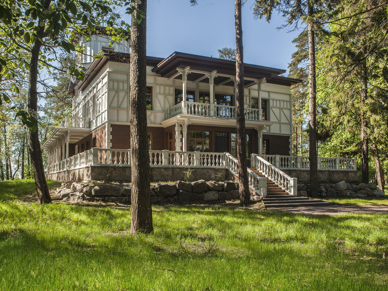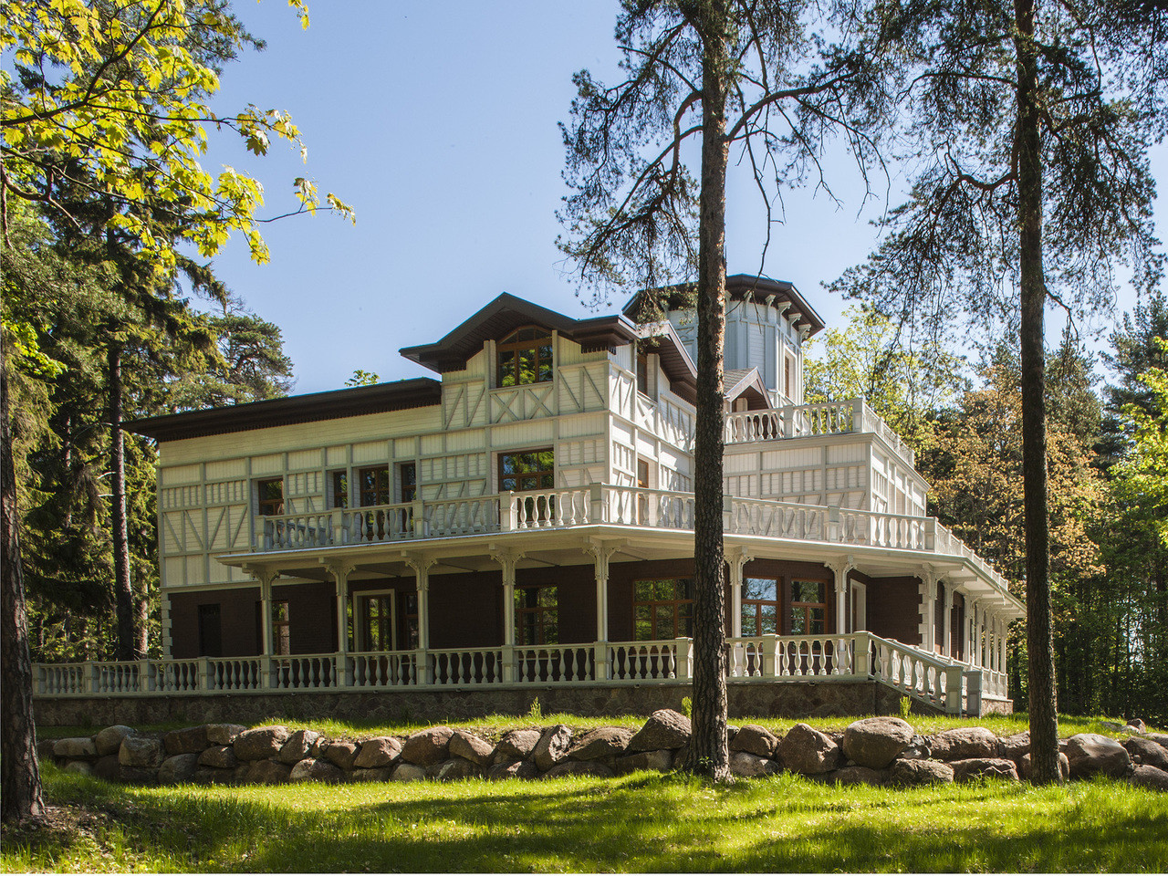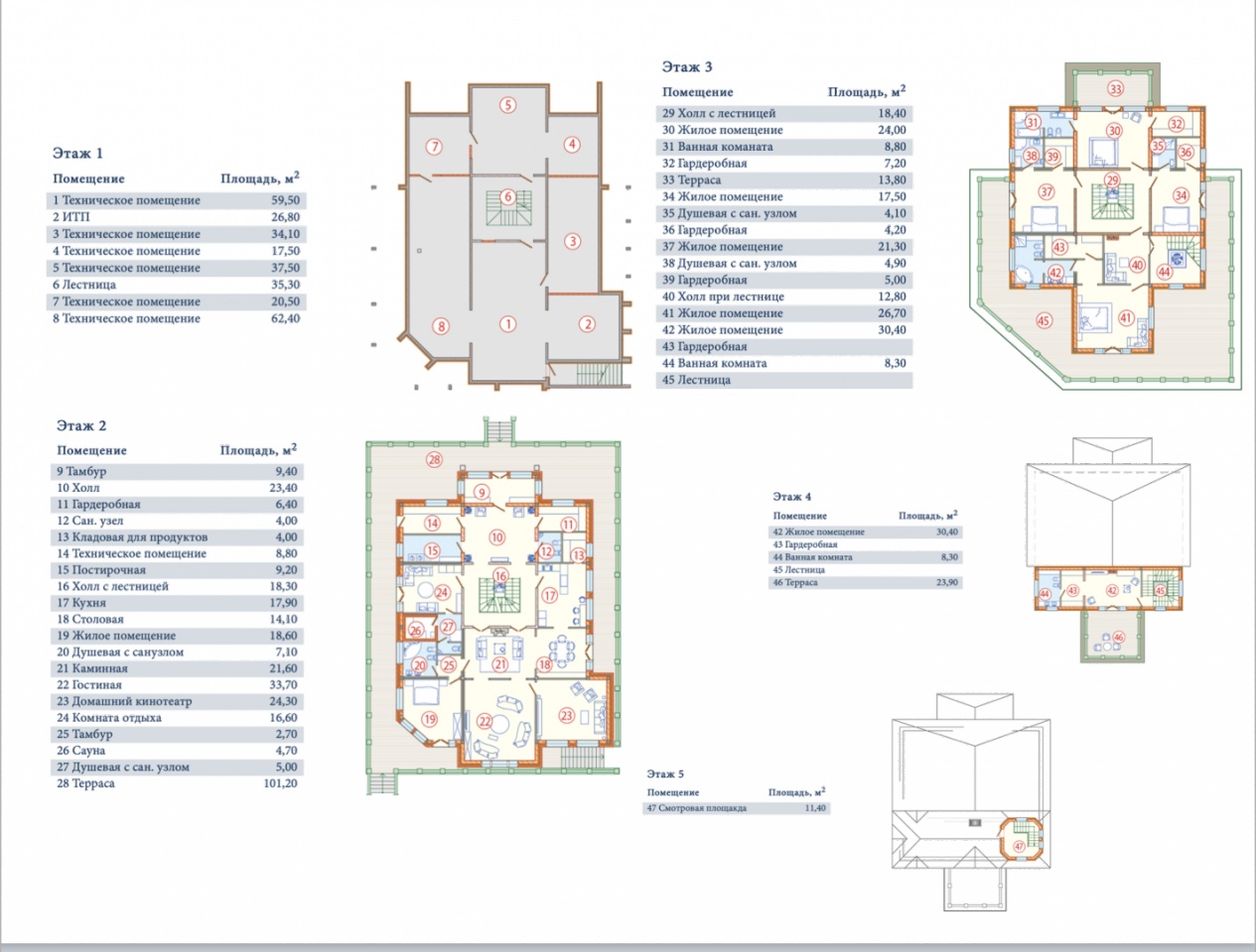 Арт. 129853563 Вилла Бъянка №1 самая большая резиденция среди объектов комплекса в КП TERIJOKI CLUB. Площадь земельного участка 6007 кв. м. На его территории сохранены природные зеленые насаждения, выложены пешеходные дорожки и предусмотрена автомобильная стоянка на 2 машиноместа. Здание представляет собой пятиэтажную резиденцию 799 кв. м., с просторными холлами, лестницами и большими окнами, обеспечивающими максимальное количество естественного света. Резиденция выполнена в белом цвете, благодаря которому и получила своё название “Бьянка”, что в переводе означает “Белая Вилла”. На 5 этажах виллы, кроме жилых помещений, размещены гардеробные, каминная, сауна, домашний кинотеатр, комната отдыха, столовая, кладовая для продуктов, терраса и смотровая площадка. Площадь террас и балконов составляет 259 кв. м. Вилла снабжена охранной сигнализацией.