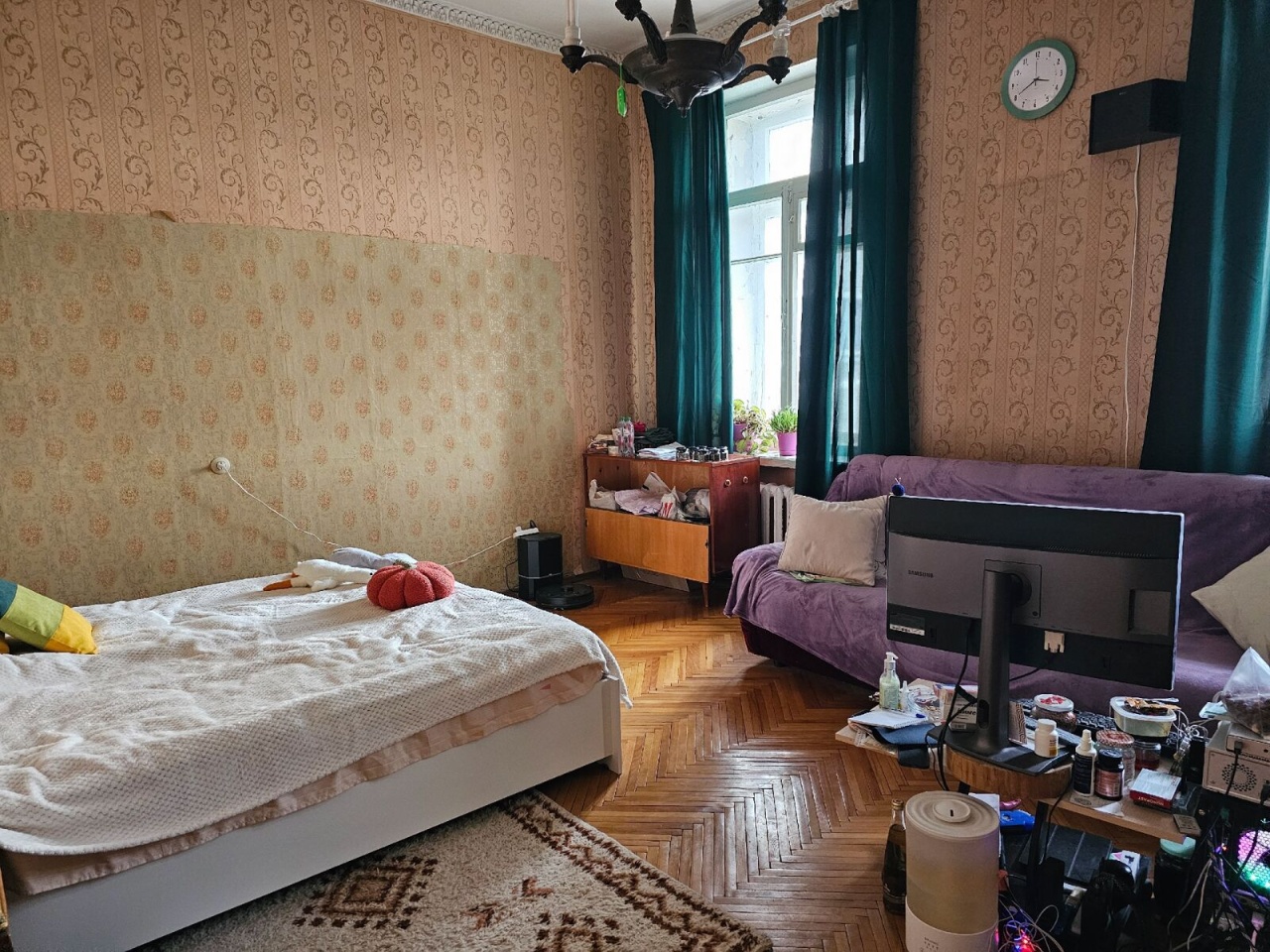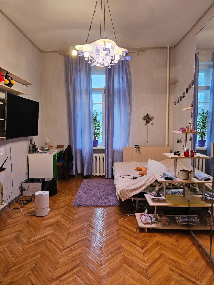 Квартира просторная, общей площадью 91.5 кв. м, комнаты хорошей, правильной формы, изолированные 25 кв. м + 15.6 кв. м + 22 кв. м, большой коридор, 2 кладовки, 4 встроенных шкафа., кухня 8.7 метров, раздельный санузел. Отопление центральное, холодная и горячая вода, газ., так же в ванной установлен бойлер. Большие окна, высокие потолки, что делает квартиру очень светлой, комфортной и уютной.