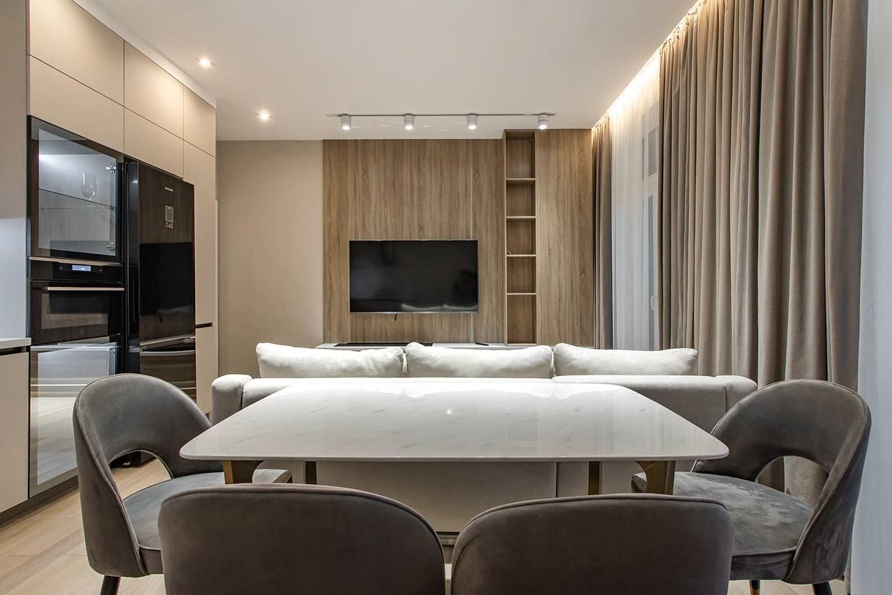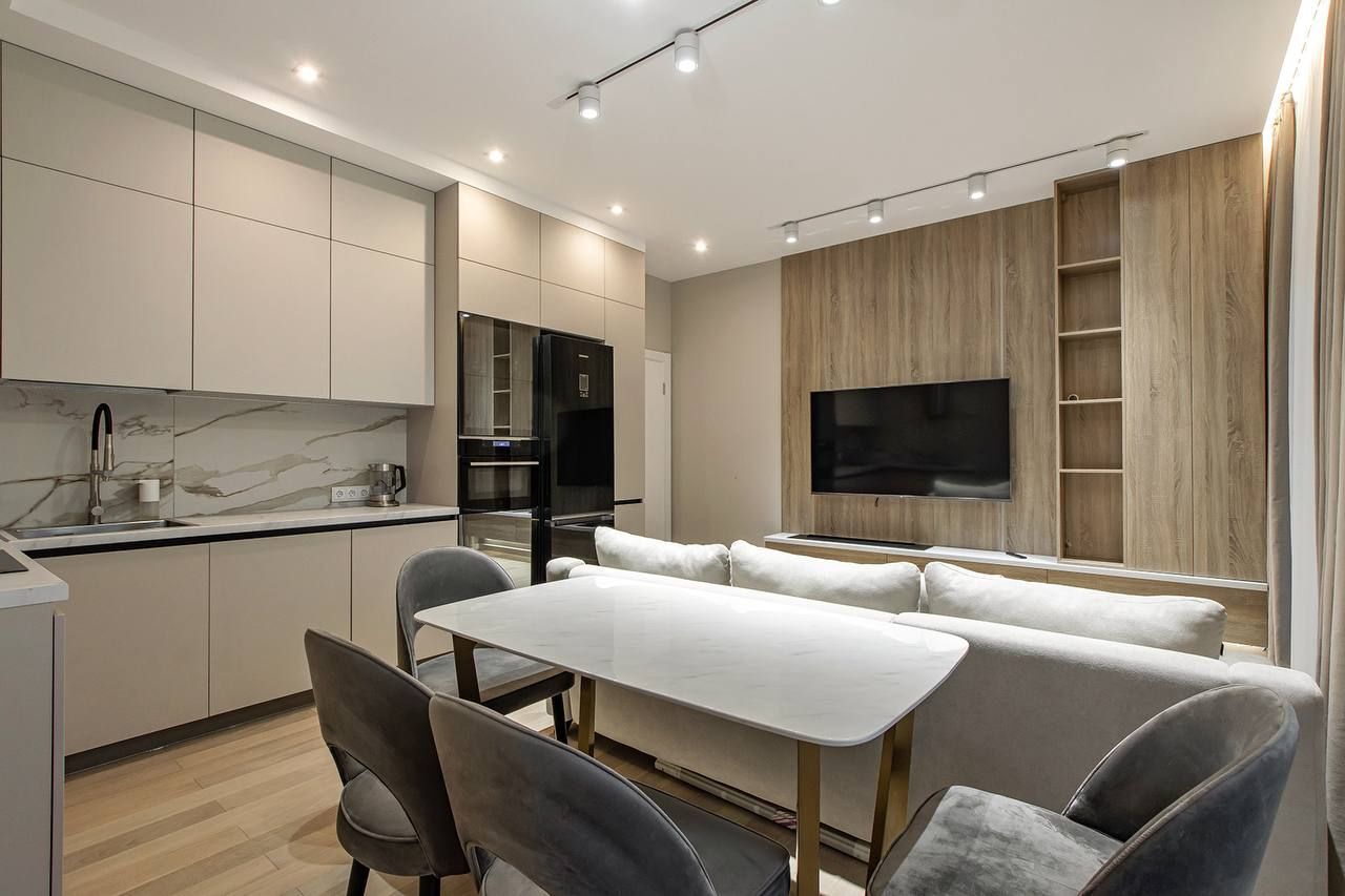 ID: 394393 Предлагается в аренду двухкомнатная квартира евро-планировки, расположенная в Центральном районе Санкт-Петербурга, на Полтавском проезде, дом 3. Объект находится в клубном жилом комплексе, всего в 250 метрах от Невского проспекта и примерно в пяти минутах пешком от станции метро «Площадь Восстания», что обеспечивает высокую транспортную доступность и развитую инфраструктуру. Общая площадь квартиры составляет 55.7 кв. м. В жилье выделены две комнаты: гостиная площадью 22.9 кв. м и спальня 12.5 кв. м, а также кухня площадью 12 кв. м. Квартира находится на шестом этаже восьмиэтажного кирпично-монолитного дома, построенного в 2019 году. Высота потолков позволяет создавать ощущение простора, а панорамные окна выходят во двор, что способствует тишине и приватности. Жильё оснащено балконом, двумя санузлами и вместительной прихожей. Квартира с дизайнерским ремонтом, что подчёркивает современный стиль и функциональность пространства. В комнатах и на кухне имеется мебель, а для комфортного проживания предоставляются бытовые приборы и техника: телевизор, холодильник, стиральная и посудомоечная машины, электрическая плита. Наличие лифта в доме обеспечивает удобный доступ на этаж. Расположение объекта отличается развитой городской средой — в пешей доступности множество торговых центров, магазинов, кафе и ресторанов, что создаёт все условия для комфортной жизни в центральной части города. Недалеко находятся Невский, Старо-Невский проспекты и Лиговский проспект, что дополнительно расширяет возможности передвижения. Стоимость аренды составляет 200 000 рублей в месяц, коммунальные услуги оплачиваются отдельно и ориентировочно составляют 10 000 рублей в месяц. Минимальный срок аренды — 11 месяцев. Требуется предоплата в размере 200 000 рублей. Комиссия агентства составляет 50%.