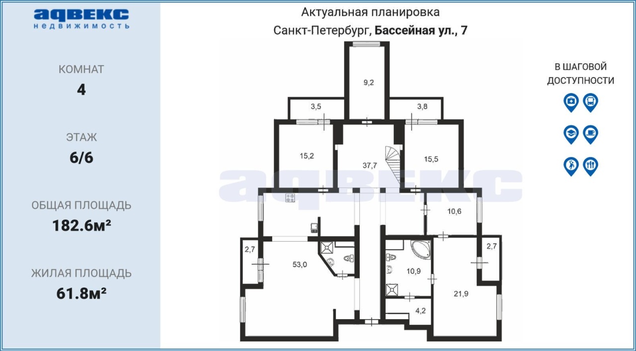 | Этаж | 6 | Общая площадь | 182.6 кв.м. |