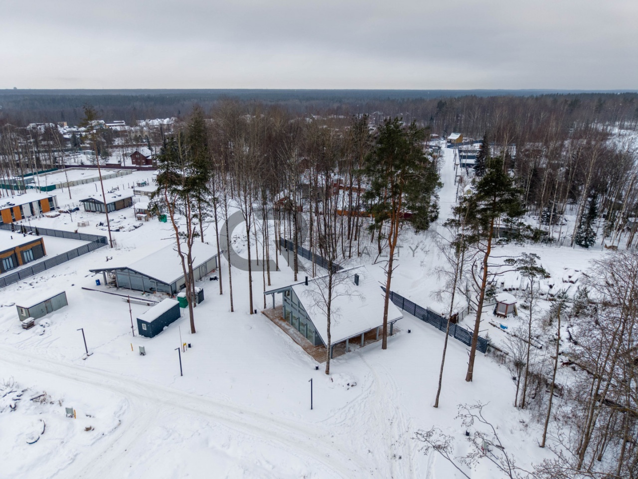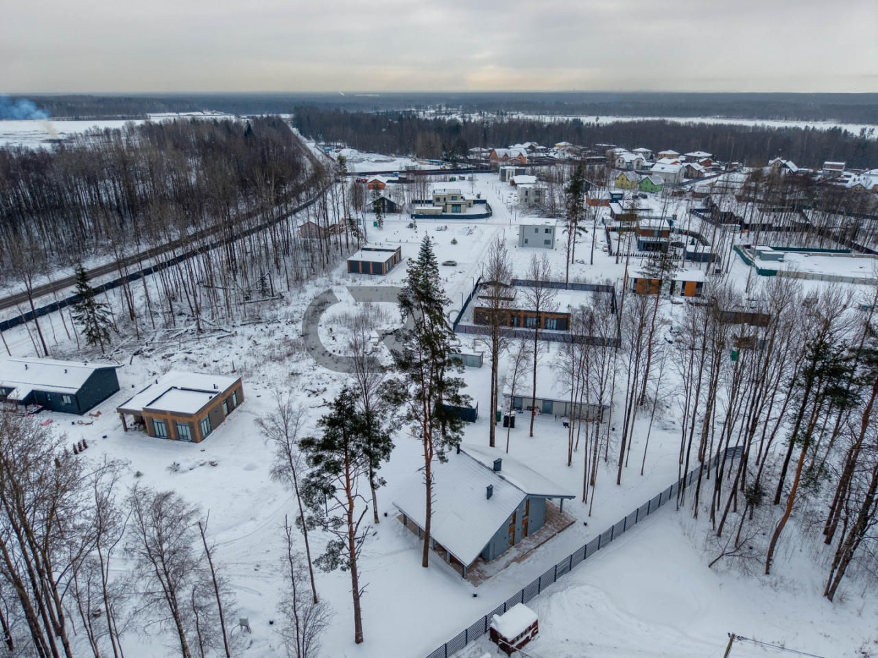 - Небольшой, новый коттеджный посёлок на 43 дома, с охраной, КПП, видеонаблюдением и ограждением по периметру.