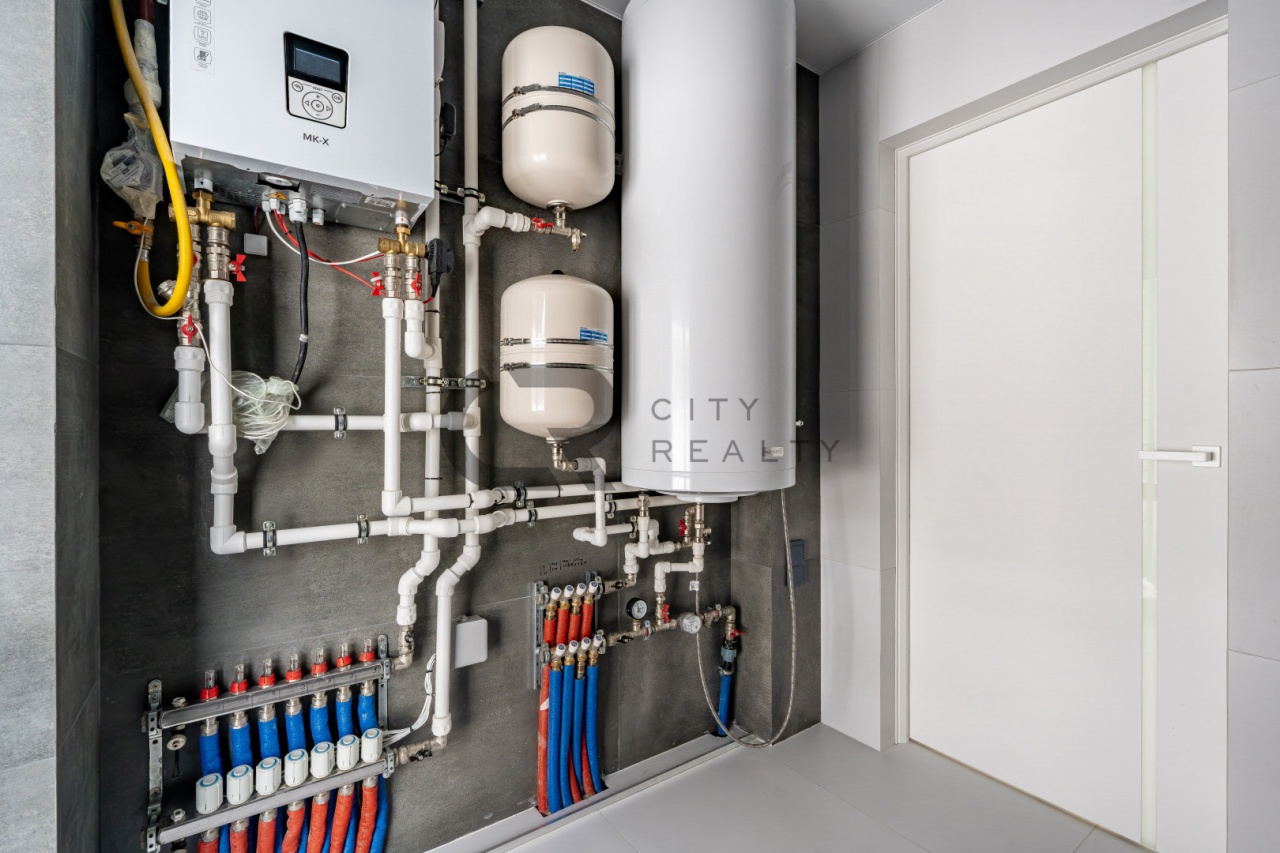 - Отопление — разводка по полу с газовым и электрическим котлом, установлена система «умный дом», система контроля влажности и тепла в доме, шторы с эл приводом и тп