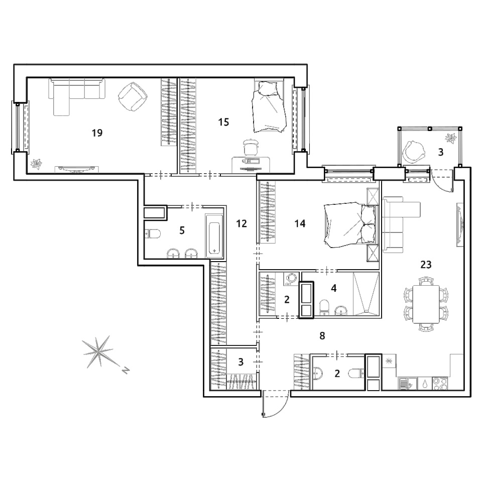 Просторная квартира с мастер-спальней. Панорамные окна с видом на зеленый остров, набережную и Неву.