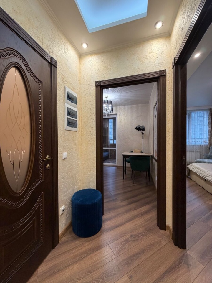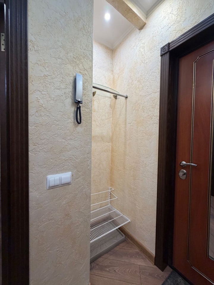 В ванной комнате установлен водонагреватель для обеспечения горячей водой во время отключений. Встроенный шкаф-гардеробная помогает рационально организовать пространство для хранения вещей. Квартира расположена на 9 этаже 24-этажного кирпично-монолитного дома.