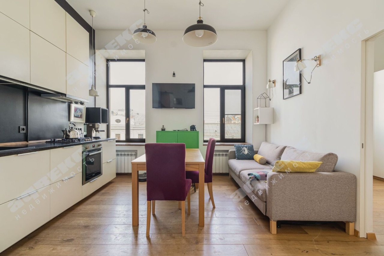 КВАРТИРА: Светлая, лаконичная 2х квартира в центре города, все окна выходят на улицу Фурштатская. Две изолированных комнаты 16.3 кв. м и 9.8 кв. м, кухня - гостинная 20.7 кв. м, два санузла. Высокие потолки 3.4м создают простор. В квартире выполнен дизайнерский ремонт (есть дизайн проект), все пространство продумано до мелочей.