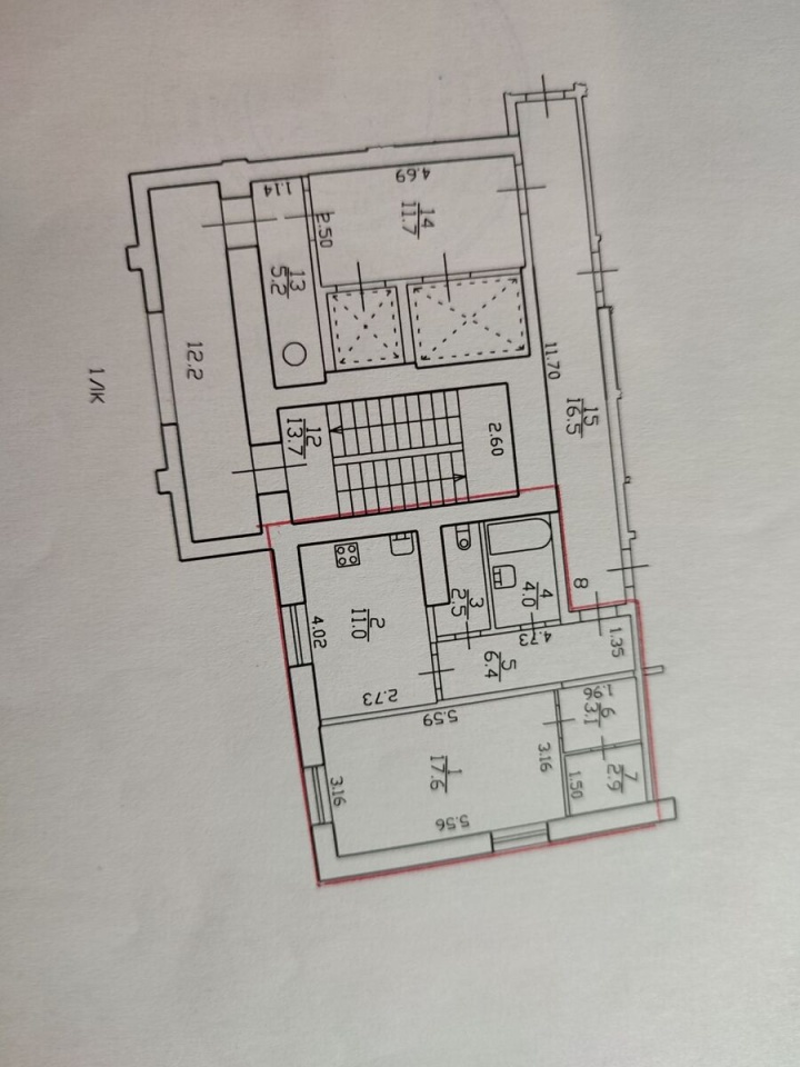 Жилая площадь 17.6 кв.м. Число комнат 1