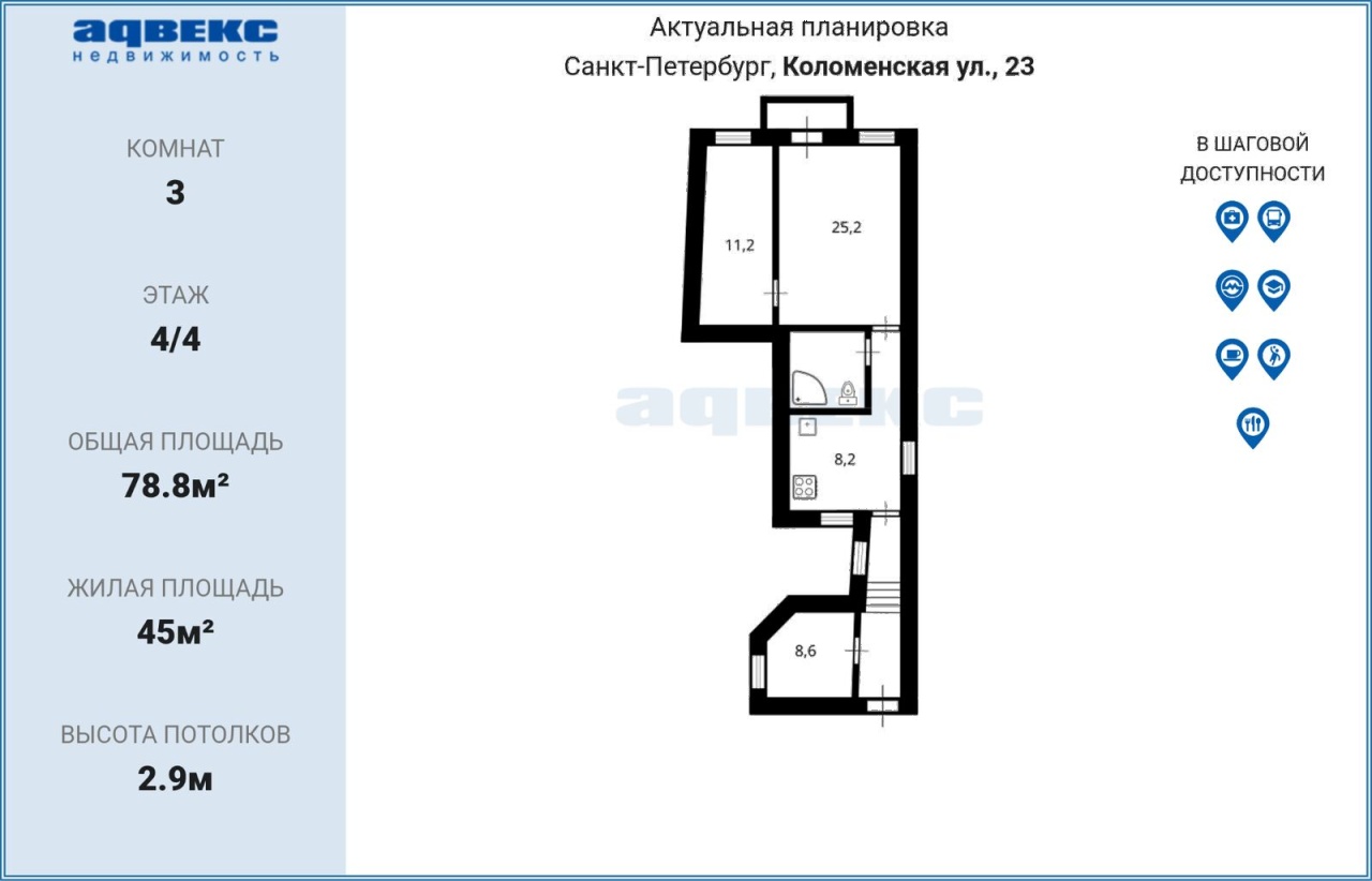 Этаж 4 Общая площадь 78.8 кв.м.