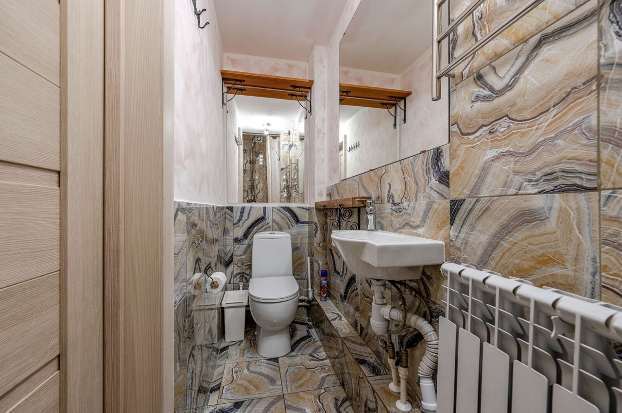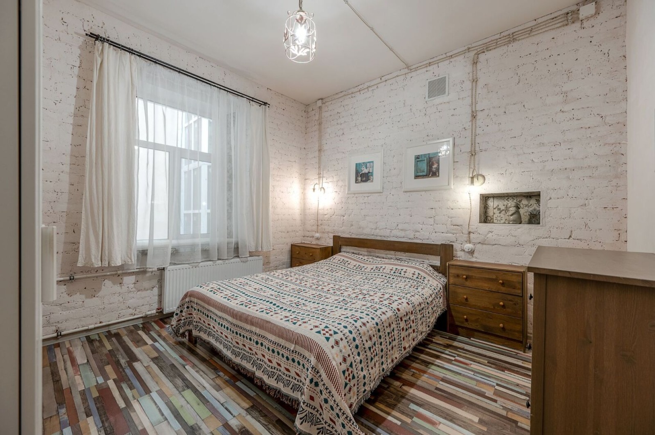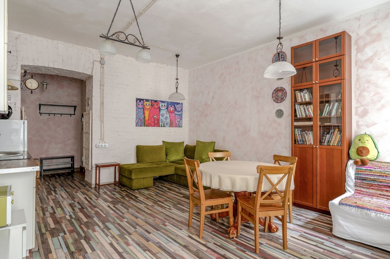 Квартира находится на втором этаже пятиэтажного кирпичного дома, построенного в 1911 году. Высота потолков составляет 3.13 метра, в квартире выполнен качественный евроремонт. Планировка включает четыре комнаты площадью 25, 16, 10.5 и 24.5 кв. м, а также кухню площадью 12 кв. м. Санузлы раздельные. Окна квартиры выходят во двор, поэтому тихо, не слышно уличного шума. Квартира оборудована газовой плитой, остается мебель в комнатах и на кухне.