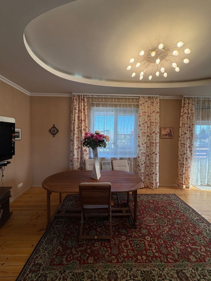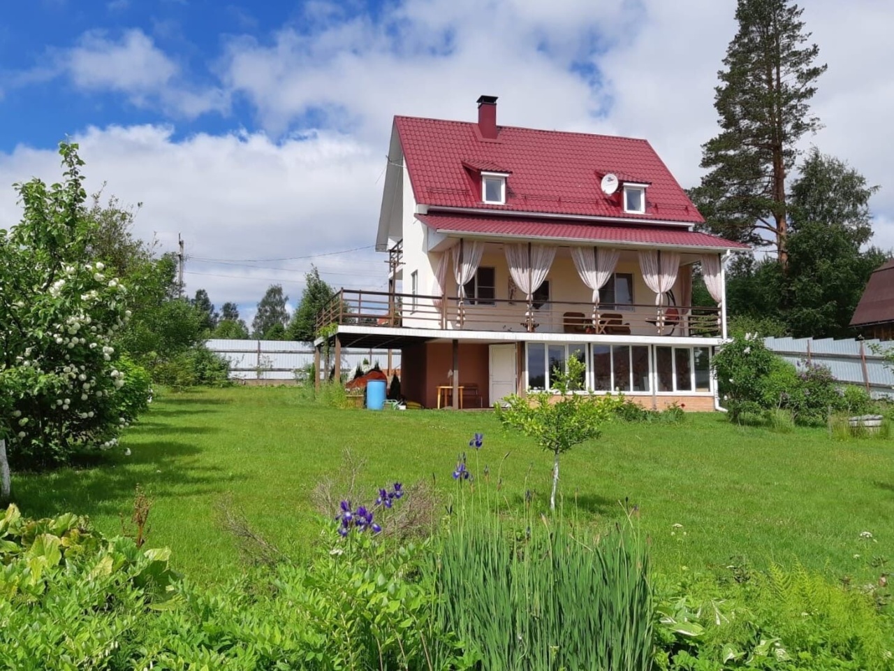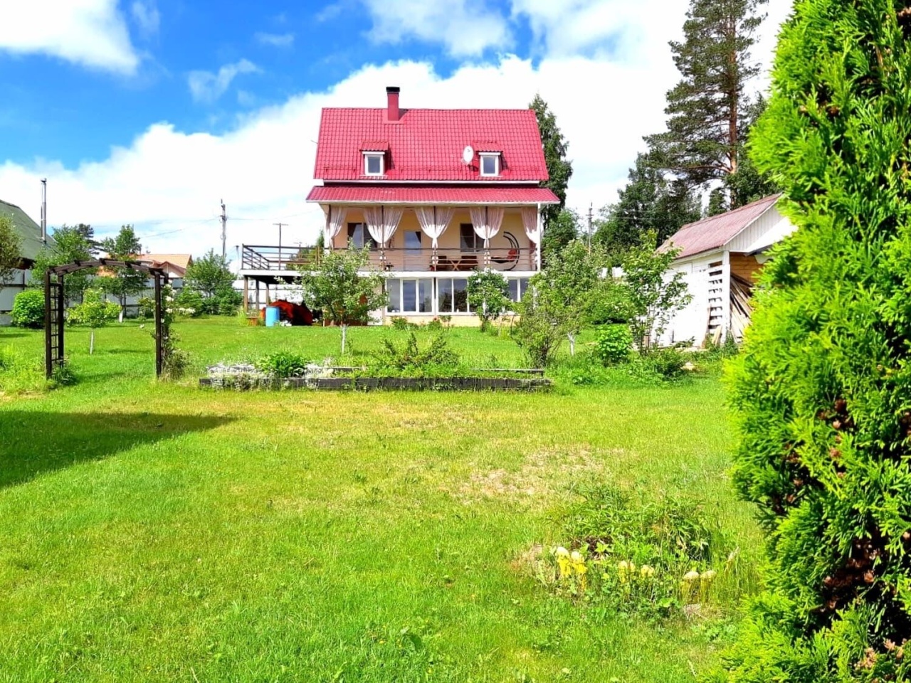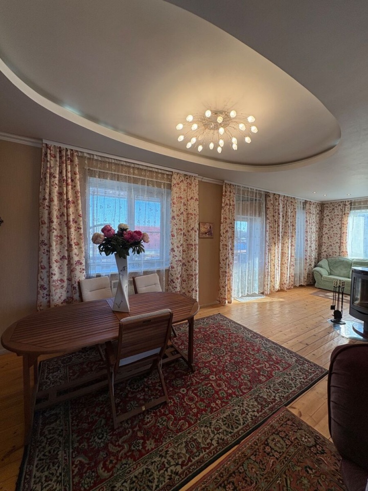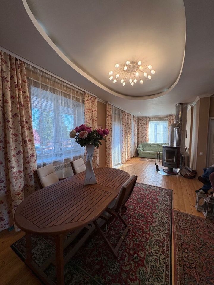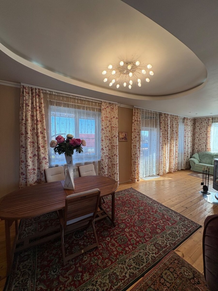 Продается дом, но это не просто загородный дом, а комплекс для отдыха всей семьи. На большом ровном участке 20 соток находятся зимний дом 163.5 м, баня, уютная крытая беседка с грилем, хозблок. Участок свободен от огорода, много свободного места, по периметру высажены плодовые деревья. Недалеко находится лесное озеро, где в жаркие дни можно прекрасно проводить время, купаться и кататься на сапах. Дом построен для круглогодичного проживания, из качественных материалов: ., фундамент., кровля, и полностью оборудован мебелью и техникой. Построен и зарегистрирован в. году. Удобная и продуманная планировка дома: на первом этаже просторная кухня-гостиная с выходом на балкон; большой стол, где каждому члену семьи найдется свое место; камин, который согреет Вас зимними вечерами, много окон и много света. На втором этаже спальня с собственным маленьким балкончиком, просторный холл, который при желании можно превратить в отдельную спальню, туалетная комната. В цокольном этаже еще одна комната с гранитным камином и собственной туалетной комнатой с дешевой кабиной. Баня - сруб, обшитый сайдингом. Уютная деревянная беседка с грилем, который специально по заказу везли из Финляндии. Площадь участка позволяет разместить там все: дом, баню, хозблок, места для автомобилей, можно оборудовать небольшой бассейн.