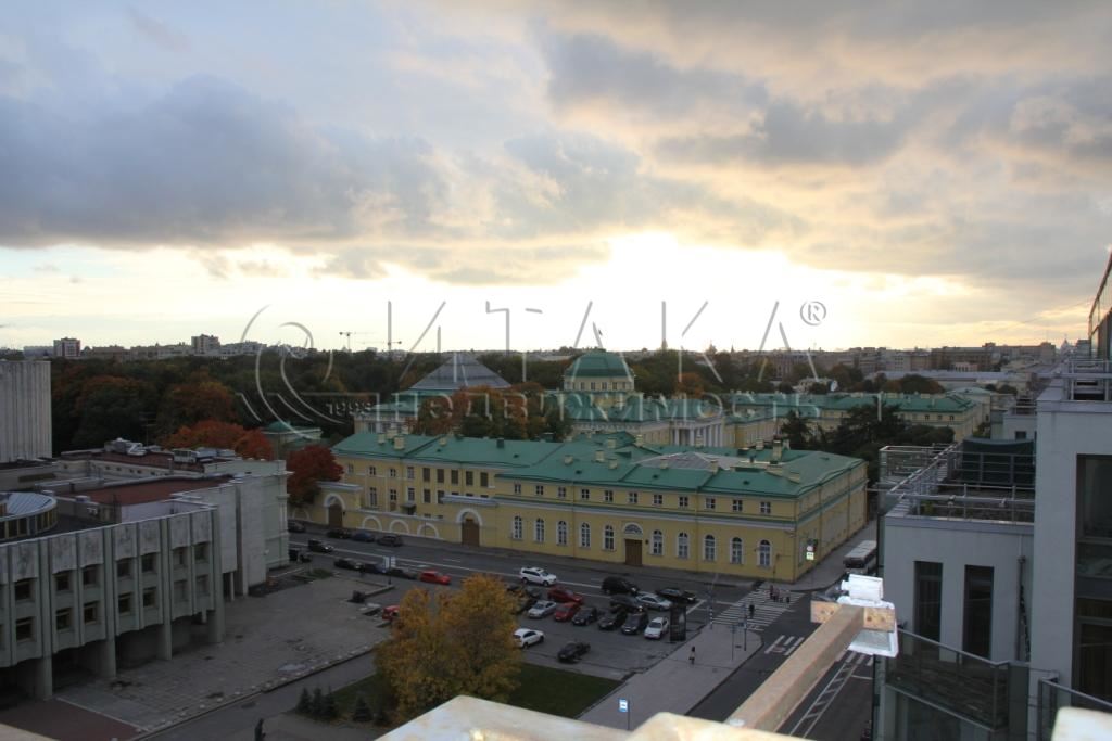Над паркетом и потолком трудились реставраторы Юсуповского дворца. По периметру всей квартиры терраса, с которой открывается вид на Таврический сад и Таврический дворец.