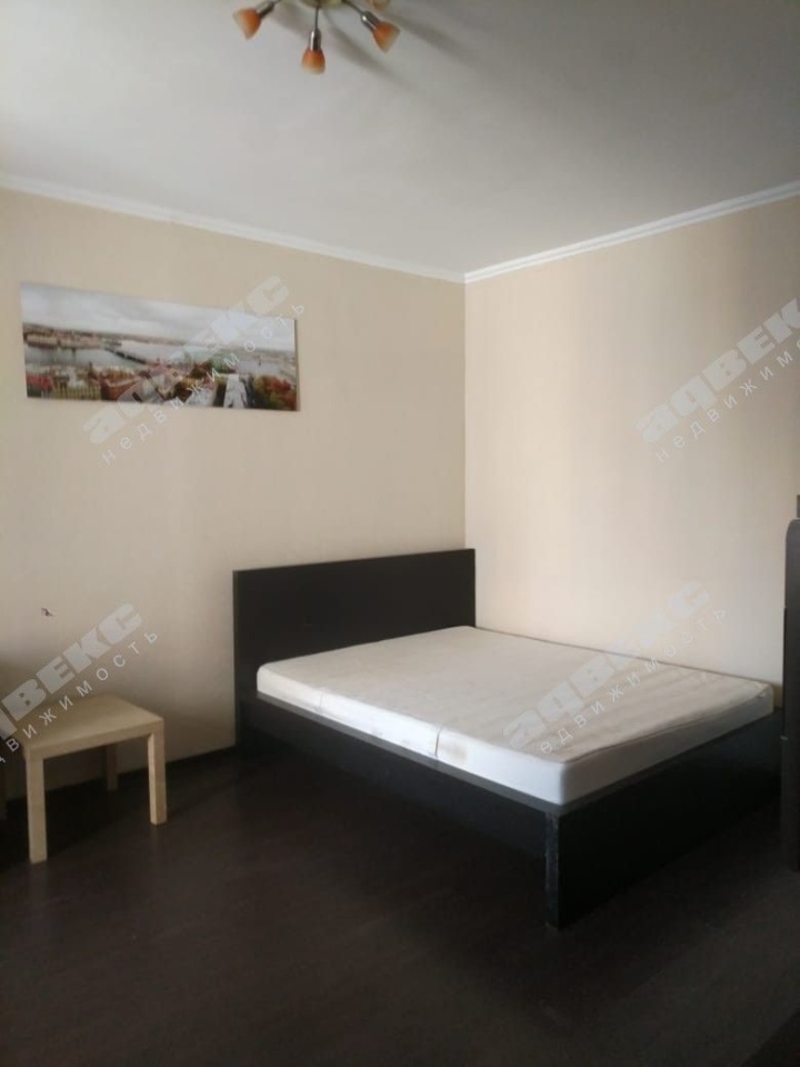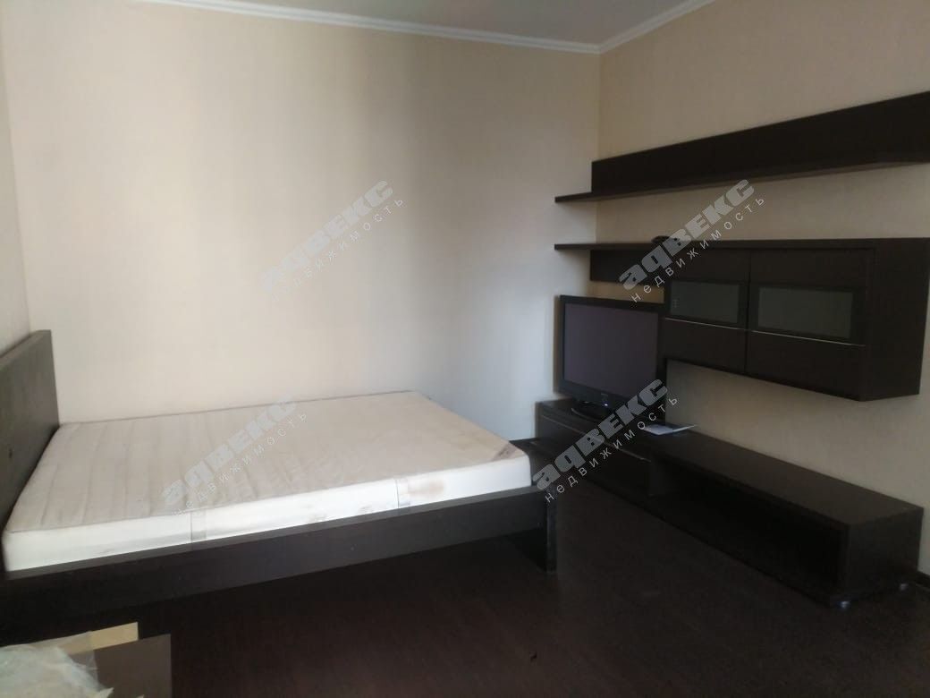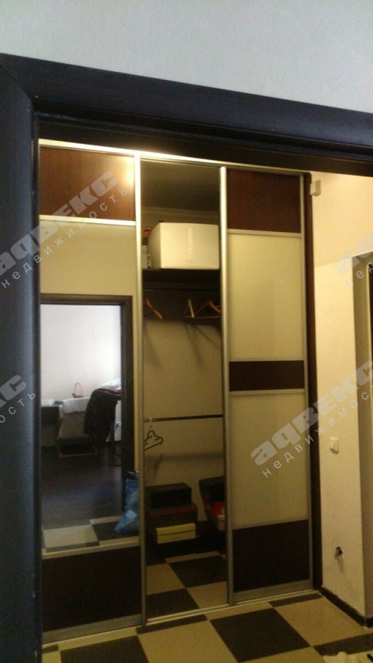 В комнате двуспальная кровать и корпусная мебель. Окна комнаты в тихий зеленый двор. В прихожей объемный шкаф-купэ.
