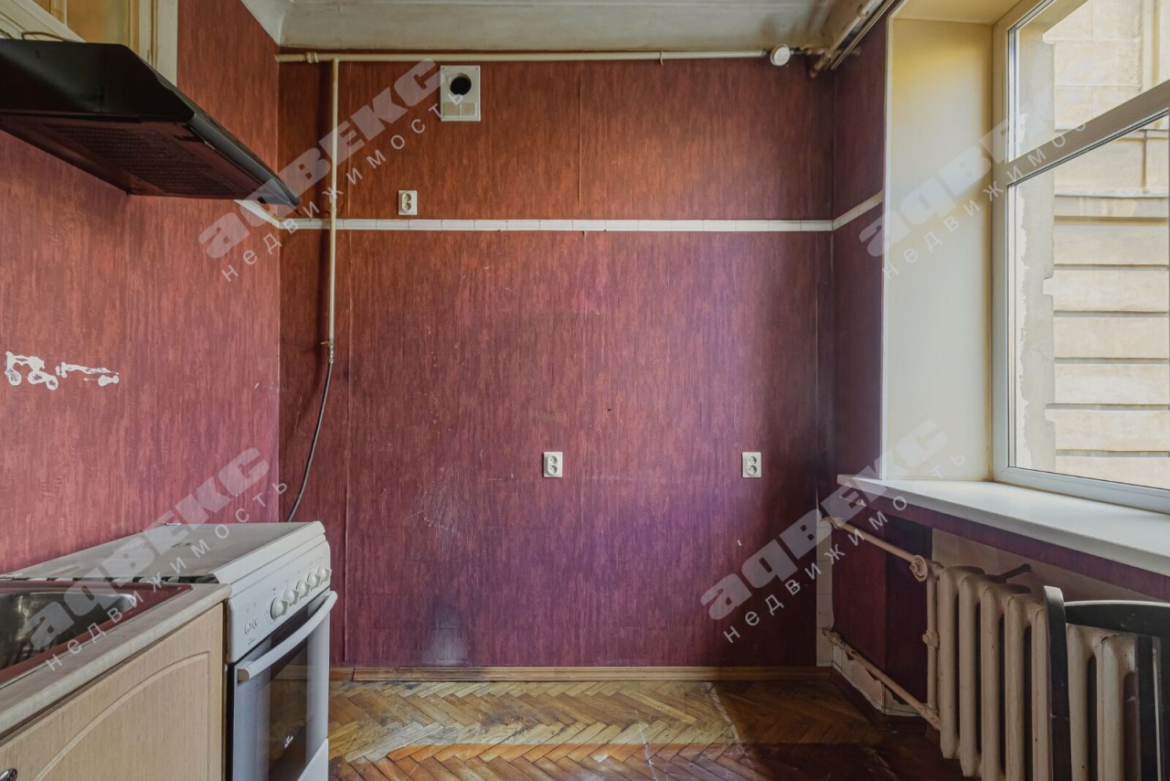 Площадь кухни 7.7 кв.м. Состояние ремонта Требует ремонта
