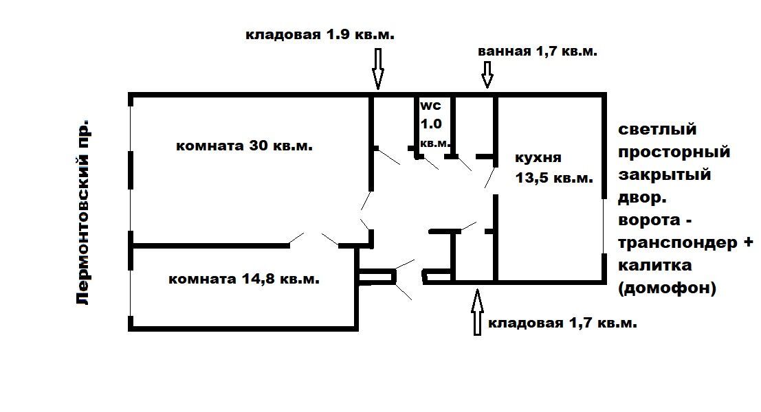| Жилая площадь | 44.8 кв.м. | Число комнат | 2 |