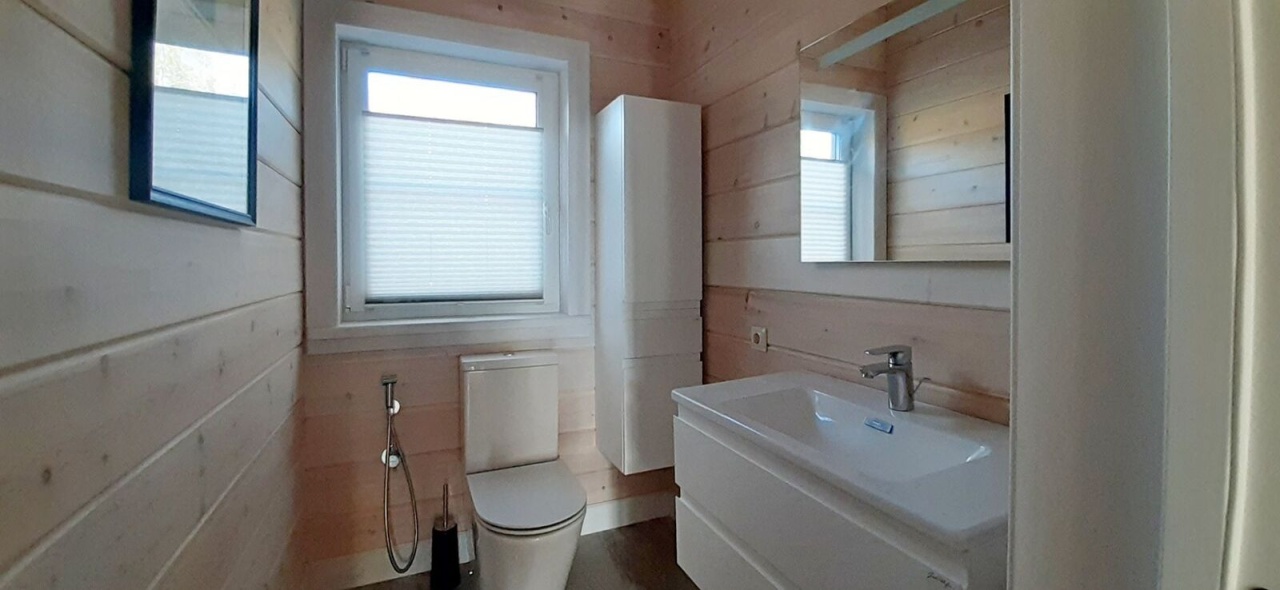 качественных материалов. Снаружи дом обшит натуральным деревянным сайдингом. Внутренняя отделка -
