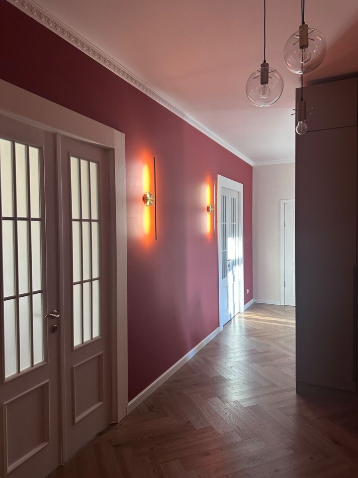 РЕМОНТ выполнен с душой и вниманием к деталям: использованы качественные материалы, полная замена электропроводки, труб водоснабжения, счетчиков на воду, радиаторов, залиты полы, выполнена шумоизоляция, предусмотрено место под боллер.