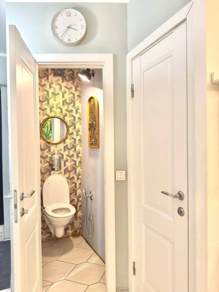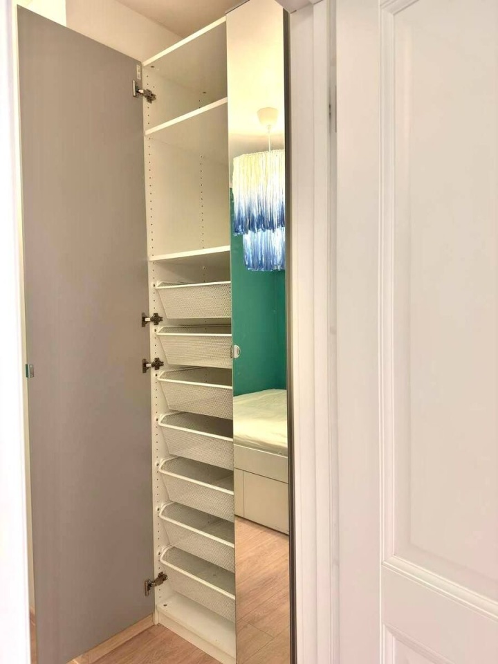 Квартира была переделана с пола до потолка, высота потолков увеличилась. Снесены все не несущие стены и выстроены заново по старой планировке с дополнительным делением второй комнаты на 2 (детская с окном и спальня с окном под потолочным