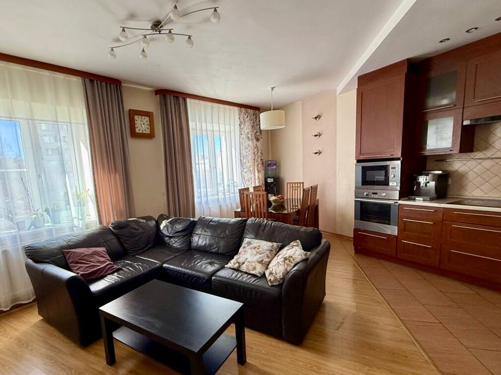 Общая площадь: 92 кв. м. Просторная кухня-гостиная 26 кв. м, три спальни, два санузла и просторный коридор. Высота потолков - 2.75 м.