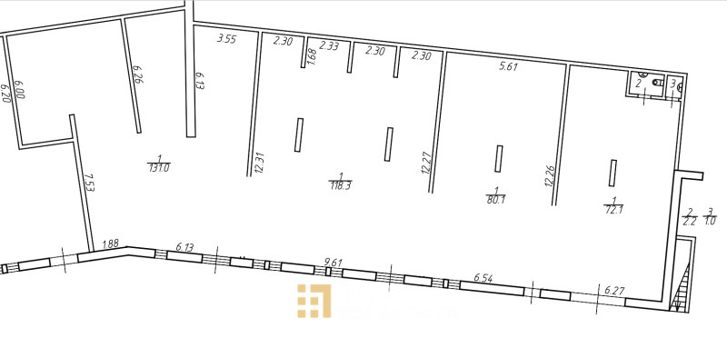 - общая площадь: 401.5 кв. м., есть возможность снять частями (249.3 кв. м., 131 кв. м. и др.) ;